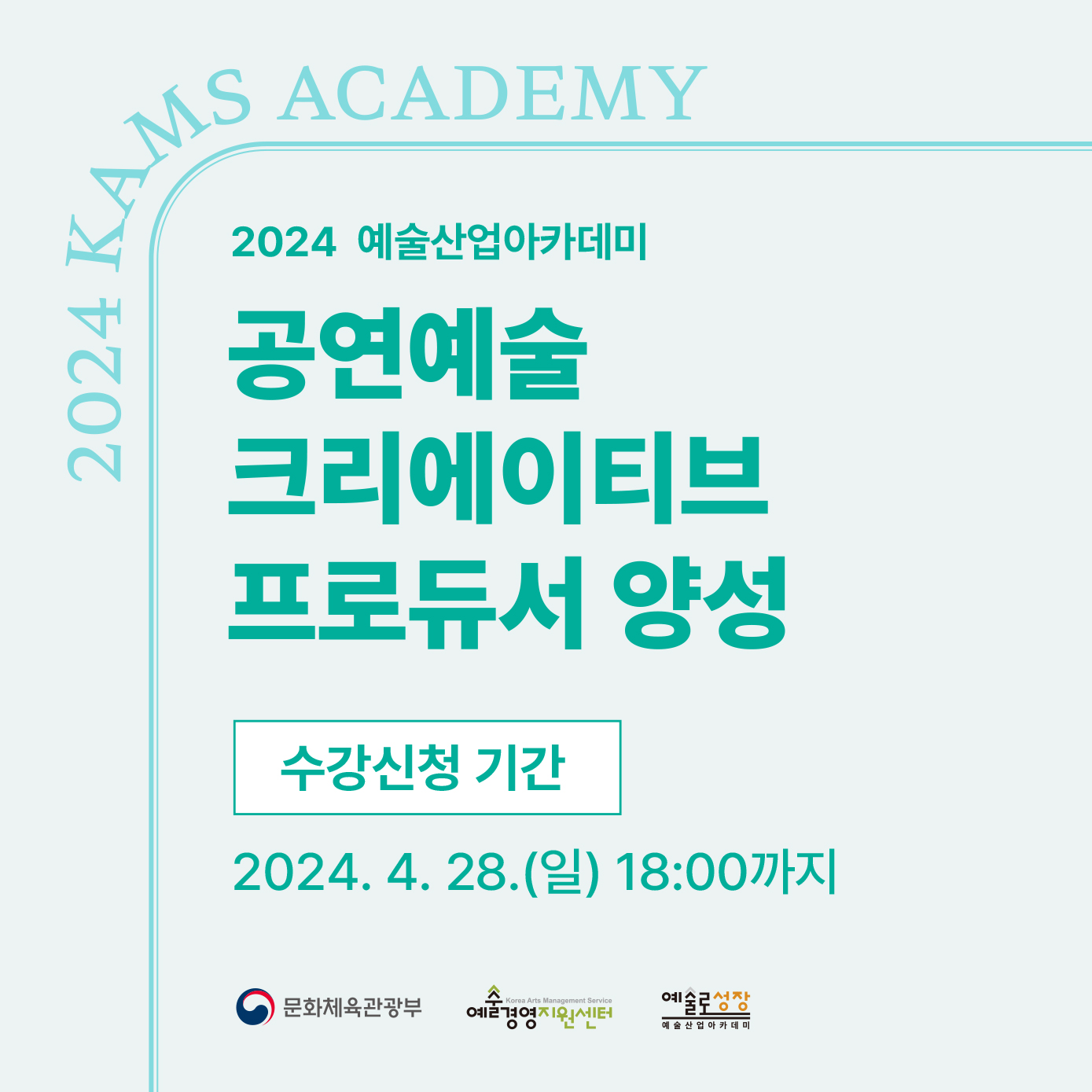 차세대 공연예술 크리에이티브 프로듀서가 되고자 하는 경력 3~5년의 공연·축제 기획자, 민간 기획자, 독립 프로듀서라면 누구나 지원할 수 있으며, 오는 28일(일)까지 아트모아(https://artmore.kr) 공식 누리집을 통해 지원할 수 있다.