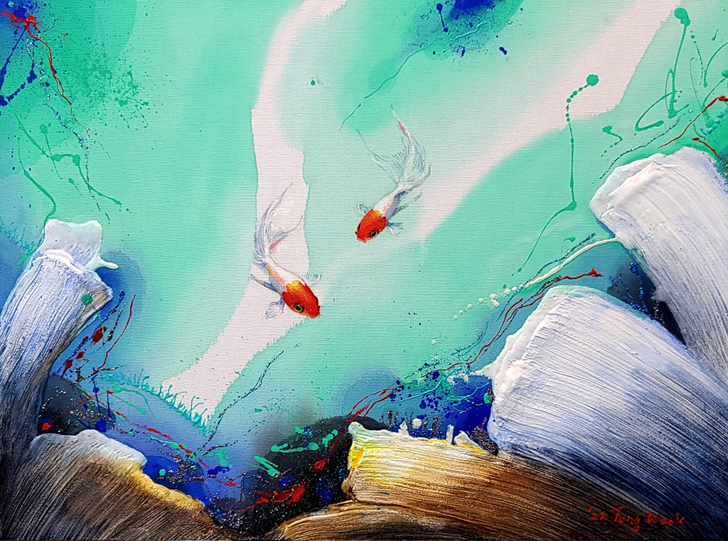 굵고 묵직한 붓 터치로 채색된 바탕은 일렁이는 거친 파도의 모습이기도 하며 인생에서 만난 어려움의 중복이기도 하다. 그 위를 평화롭게 떠다니는 고래의 모습은 극복 그리고 열정 이라는 긍정의 힘이 존재하여 삶이 이어지는 과정을 담았다.