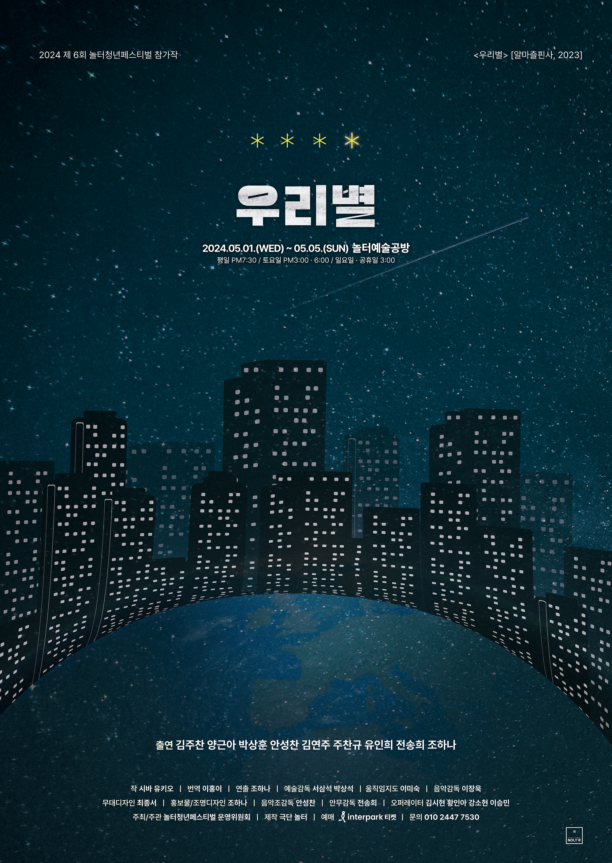 극단 놀터 측은 “놀터청년페스티벌 개막작인 ‘우리별’을 통해 거대한 우주 속에서 존재하는 우리들이 각자 스스로의 빛을 잃지 않고 앞으로 나아가길 바라는 마음을 담아 관객들을 만날 예정” 이라고 전했다.