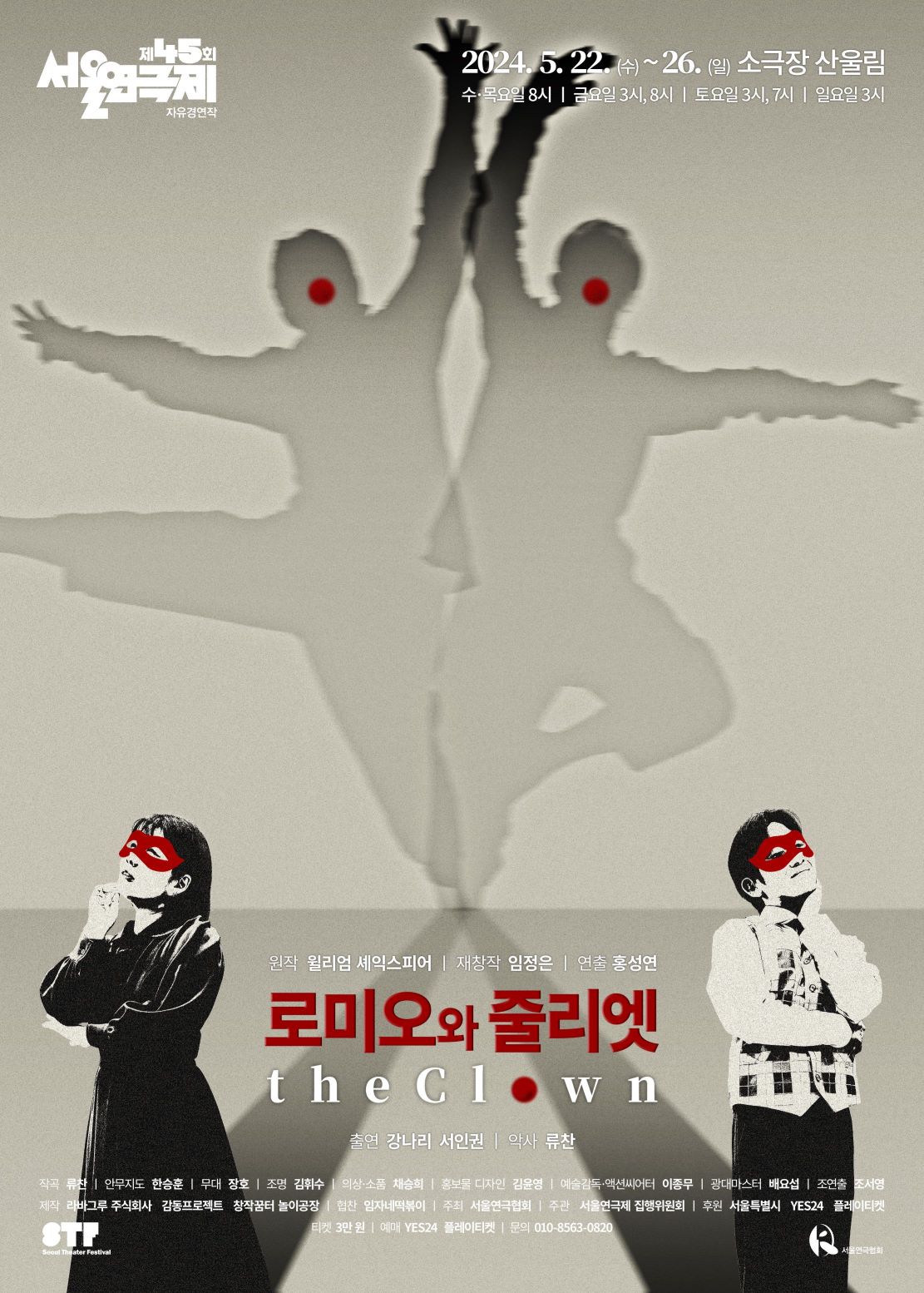 제 45회 서울연극제 자유 경쟁작으로 선보이게 되는 '로미오와 줄리엣 The clown'은 재미와 감동으로 관객들과 함께 즐겁고 행복하고 싶다는 바람으로 오는 5월22일부터 5월 26일까지 홍대에 있는 산울림 소극장에서 공연될 예정이다.