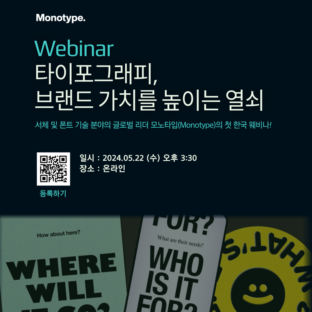 무료로 진행되는 이번 웨비나는 특히 디자이너, 마케터, 브랜드 기획자에게 도움이 되는 유용한 정보를 제공할 것으로 기대된다. 웨비나 사전 등록은 모노타입 한국어 공식 웹사이트를 통해 신청할 수 있다.