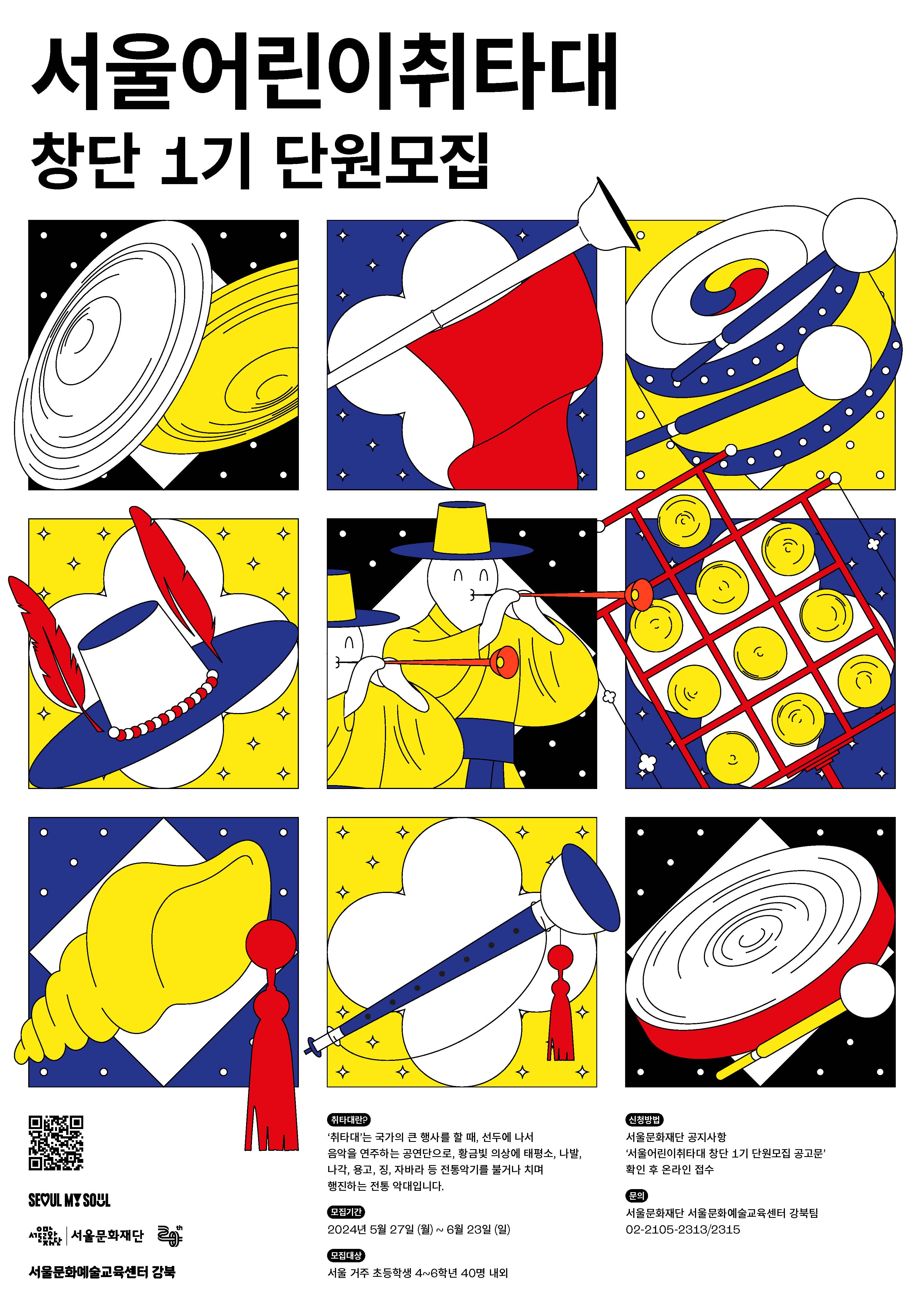 [플레이뉴스 문성식기자] 서울문화재단(대표이사 이창기)은 올해 하반기 강북구 미아동에서 문을 여는 ‘서울문화예술교육센터 강북’(이하 강북센터)를 기념하여 서울시를 대표하는 전통예술 기반의 '서울어린이취타대'에서 활동할 40여 명의 어린이 단원을 27일부터 내달 23일까지 약 한 달간 공개 모집한다.