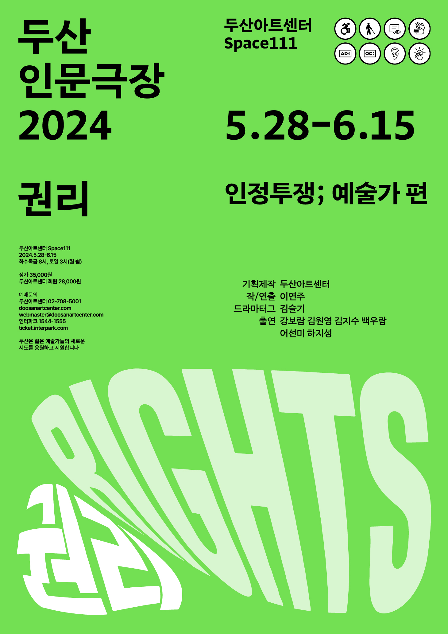 ‘두산인문극장’은 인간과 사회에 대한 과학적, 인문학적, 예술적 상상력이 만나는 자리다. 2013년 ‘빅 히스토리’를 시작으로 ‘불신시대’, ‘예외’, ‘모험’, ‘갈등’, ‘이타주의자’, ‘아파트’, ‘푸드’, ‘공정’, ‘Age, Age, Age 나이, 세대, 시대’까지 매년 다른 주제로 진행해 왔다. 올해는 ‘권리’를 주제로 공연 3편, 전시 1편, 강연 8회를 진행한다.