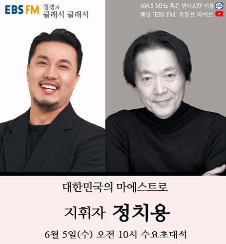 6월 5일 수요일 '수요초대석'에는 뛰어난 바톤 테크닉과 곡의 핵심을 정확하게 파악해 내는 통찰력 있고 깊이 있는 지휘로 단원들을 이끌어가는 우리나라 대표 지휘자 정치용이 출연해 클래식 음악과 함께 해온 인생 이야기를 들려줄 예정이다.