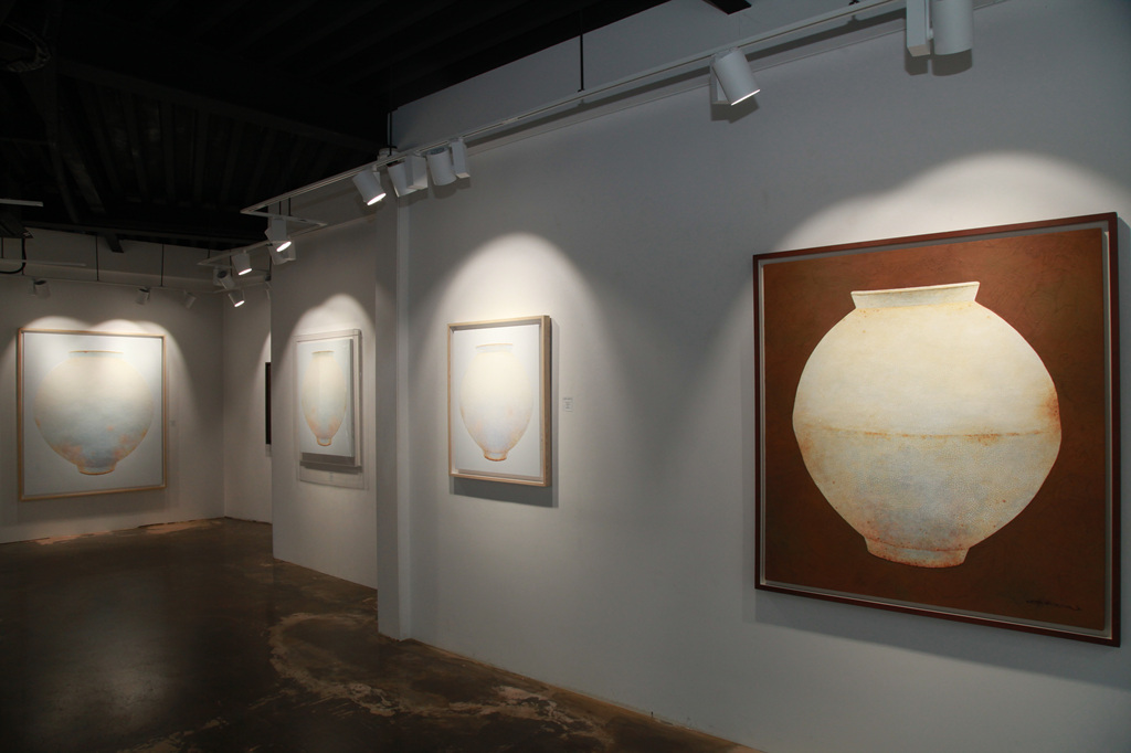 작가는 영원불멸의 도자기 작품을 혼합재료 활용하여 원형적 이미지에 가깝게 캔버스에 구현해 새로운 시각으로 달항아리를 즐길 수 있도록 했다.