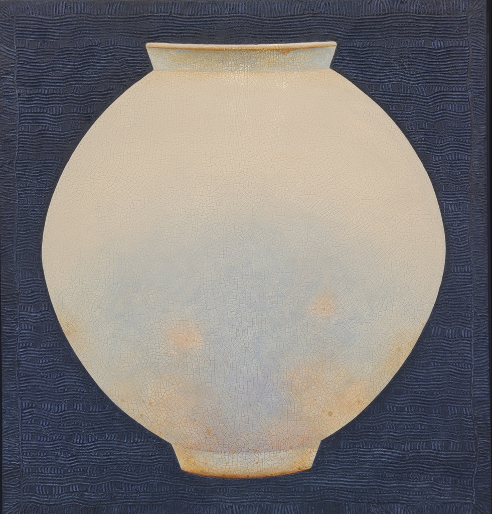 작가는 영원불멸의 도자기 작품을 혼합재료 활용하여 원형적 이미지에 가깝게 캔버스에 구현해 새로운 시각으로 달항아리를 즐길 수 있도록 했다.