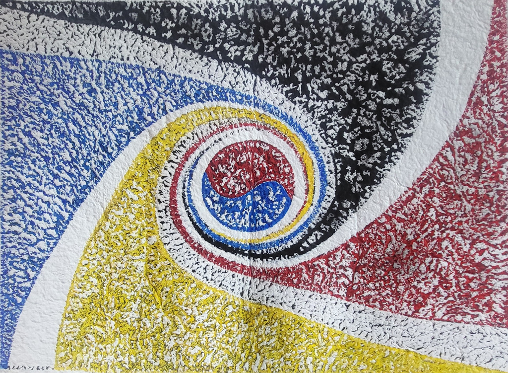 1,000번째 '우주' 작품은 태극 문양으로 중심을 잡고 사방팔방으로 휘몰아치듯 강한 에너지가 발산되는 역동적인 광경으로 빠져들게 하였다. 우주의 탄생과 소멸 그리고 번성의 전 과정을 다채로운 색상으로 넣어 몽환적이면서 아름답다.
