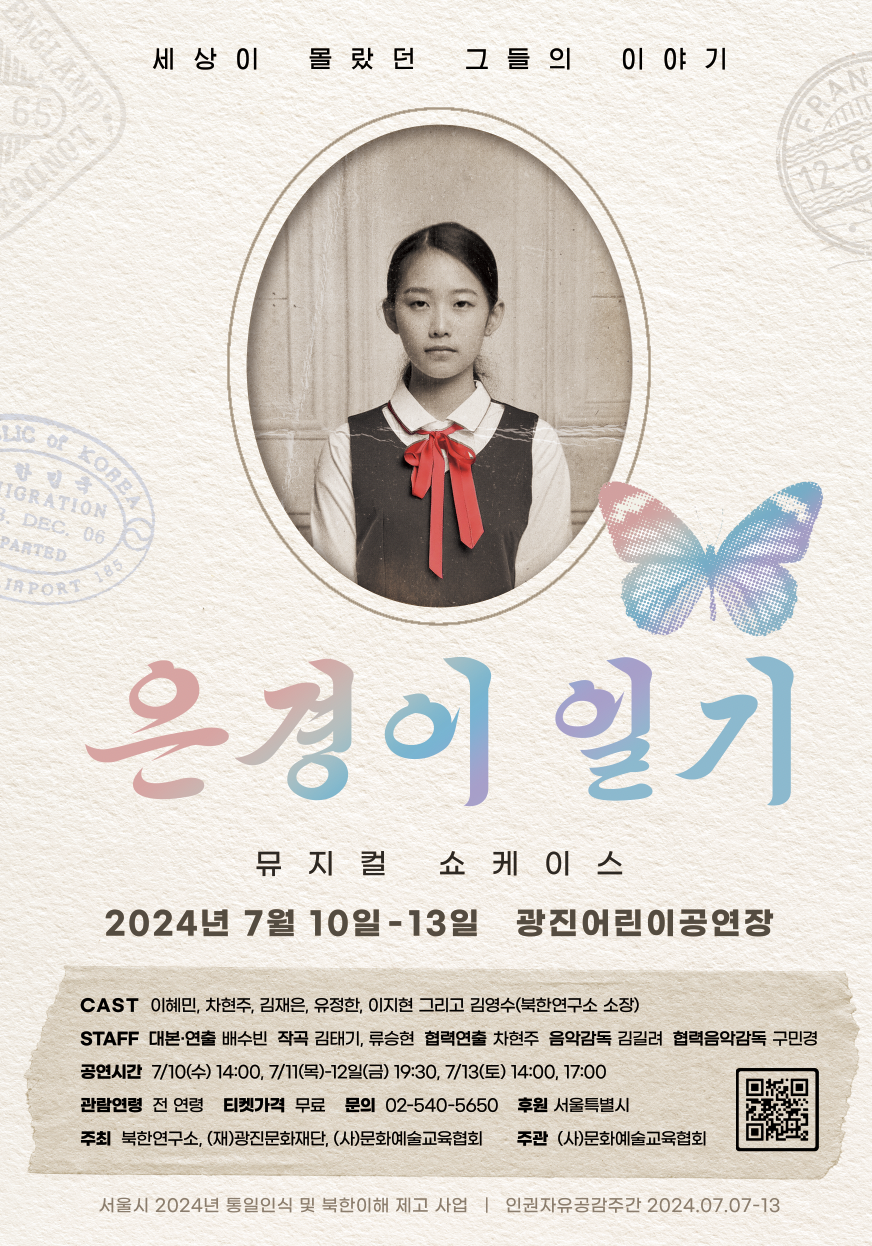 (사)북한연구소(김영수 소장), (재)광진문화재단(이사장 김경호), (사)문화예술교육협회(이사장 서재돈)이 주최하는 뮤지컬 '은경이 일기'가 ‘인권·자유 공감 주간’을 맞아 7월 10일부터 13일까지 광진어린이공연장에서 쇼케이스를 선보인다.