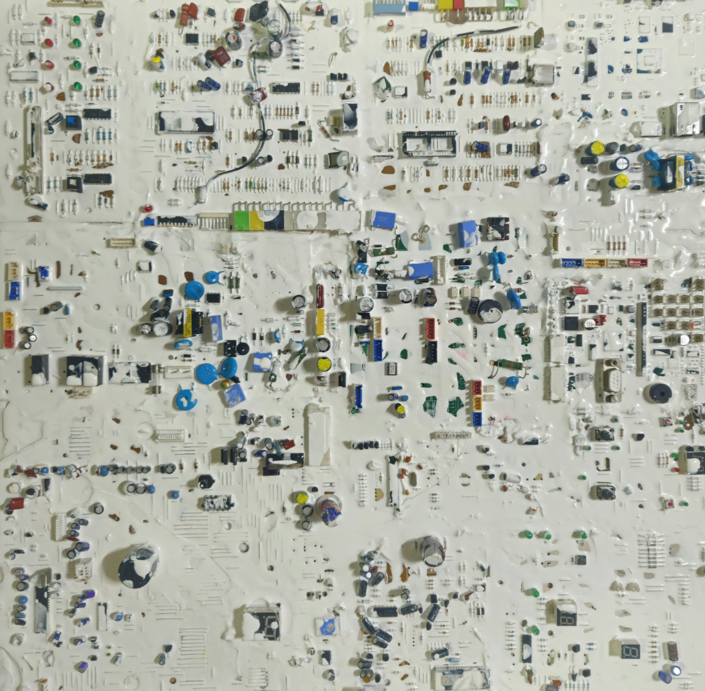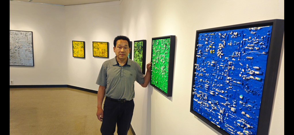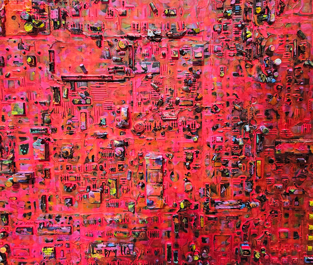 [플레이뉴스 문성식기자] 전자 기판이라는 독특한 소재로 추상회화의 새로운 느낌을 추구했다. 배열에 따라 다양한 형태들이 구성되고, 보여 지는 형체들이 감상하는 사람마다 자유롭게 해석되는 구조로 제작되어 작품을 형성하는 오브제에 따라 느낌의 다채로움을 선사한다.