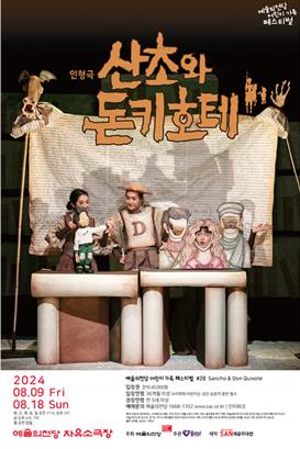 | 여름방학, 어린이와 가족 단위 관객을 위한 최고의 선물! 2017년부터 매년 여름 온 가족이 함께 즐길 수 있는 공연을 소개해 온 예술의전당이 국내외 어린이 청소년 대상 전문 공연 단체의 대표작을 엄선하여 선보인다. 7월에 선보인 '네모의 세상', '우산도둑'에 이어 8월 9일(금)부터 8월 18일(일)까지 펼쳐지는 인형극 '산초와 돈키호테'는 세계적으로 유명한 소설 「돈키호테」를 원작으로 돈키호테와 함께 떠나는 모험을 다룬다. 주인공 산초를 9살로 설정하여 어린이들이 쉽고 재미있게 성장하는 주인공 산초의 이야기와 원작의 메시지를 만날 수 있도록 재창작하였다. 오래된 서점을 배경으로 한 무대와 중세풍의 음악, 인형과 팝업북, 그림자를 활용한 연출이 더해서 돈키호테와 산초의 황당한 모험을 살아 움직이는 책으로 생생하게 전달한다. 인형들의 섬세한 연기가 어우러져 어린이들의 상상력을 자극하며 가족 모두가 함께 즐길 수 있는 시간을 제공한다. |