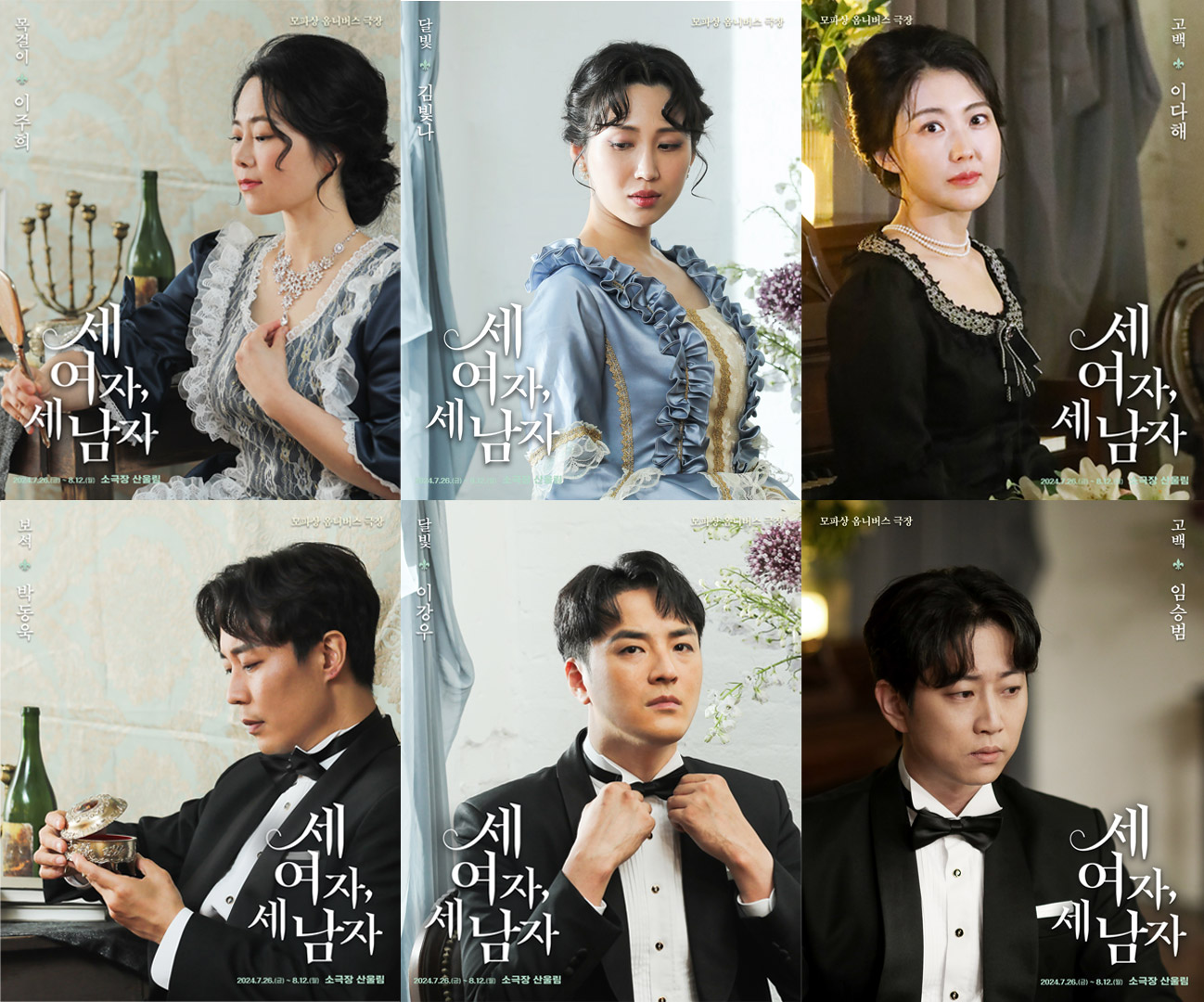 [플레이뉴스 문성식기자] 극단 산울림의 신작 연극 '세 여자, 세 남자'가 오는 7월 26일 개막을 앞두고 메인 포스터와 캐릭터 포스터를 공개했다.