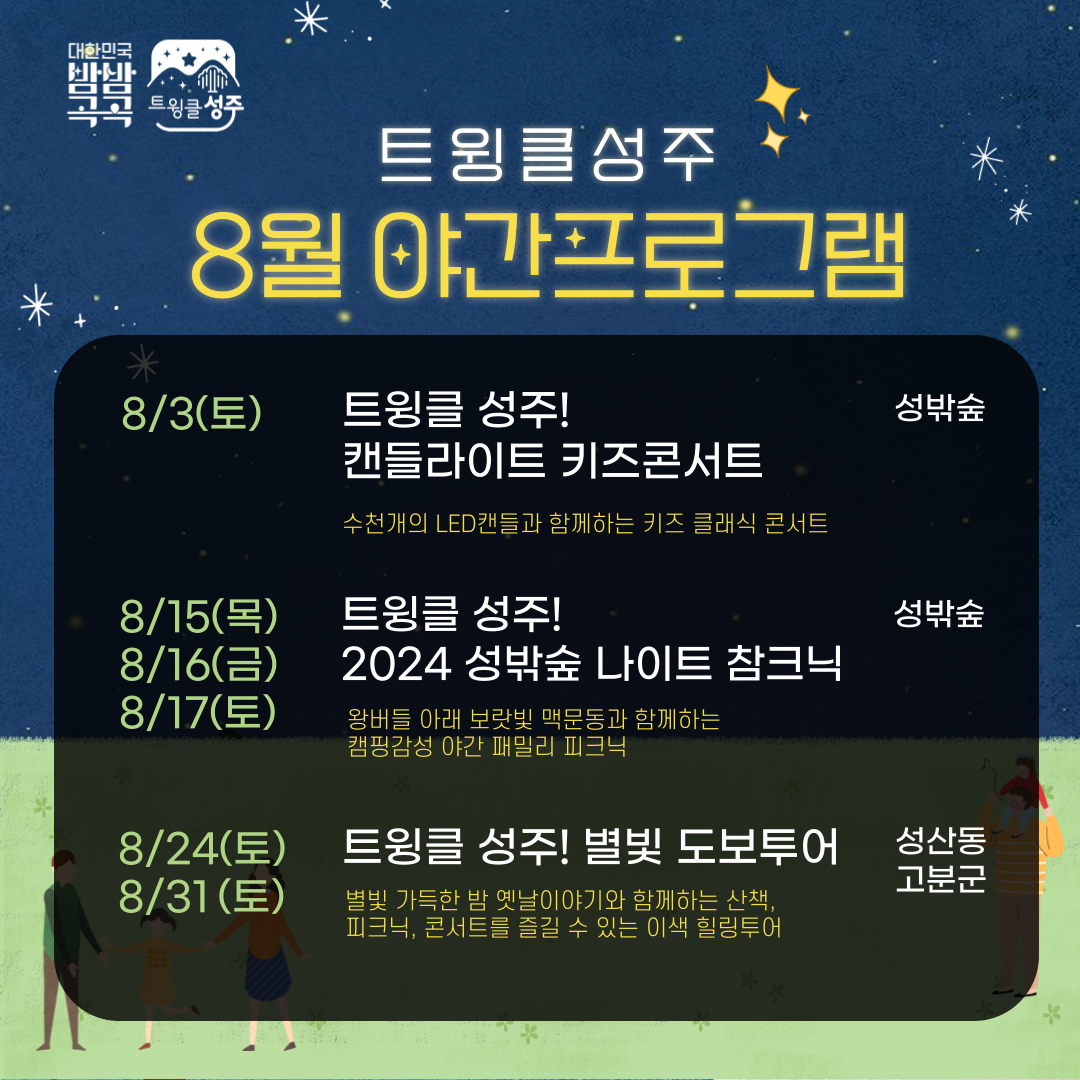 밤이 더 아름답고 즐거운 성주군을 만들기 위해 8월 한 달 동안 한여름 밤 추억을 가득 채울 야간관광 프로그램을 운영한다.