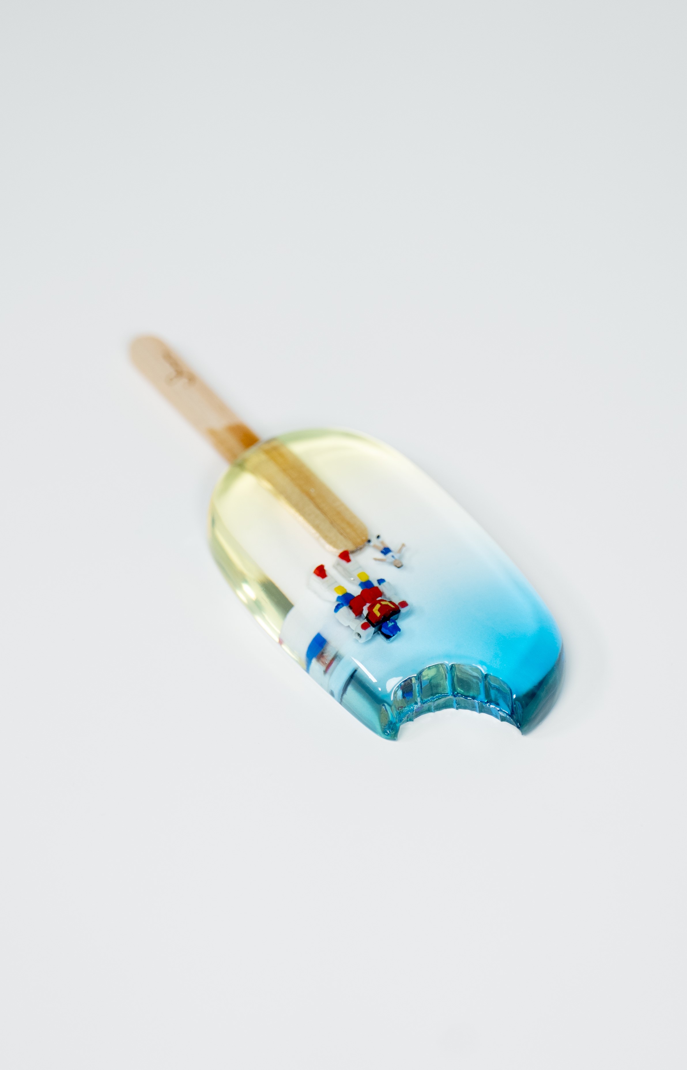 아이스크림 속 휴먼 미니어처, 치유의 곰 ‘마깨또’ 안에 있는 연고와 알약은 유한한 삶 속 연약한 인생을 상징하는 요소로, 인간의 잠재의식 속 부정적 기억을 발현한다.