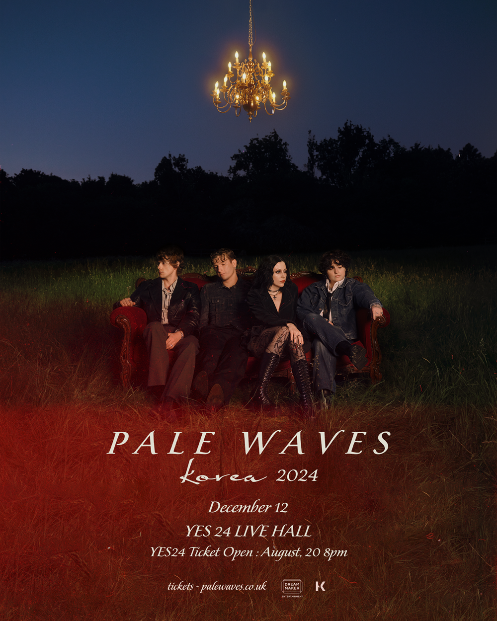 이번 [PALE WAVES Korea 2024] 공연은 오는 9월에 발매 예정인 4집 앨범 ‘Smitten’ 발매를 서포트하는 투어의 일환으로 진행되는 공연으로 예매는 예스24 티켓에서 8월 20일(화) 오후 8시에 오픈된다. 전석 121,000원에 티켓 구매가 가능하다.