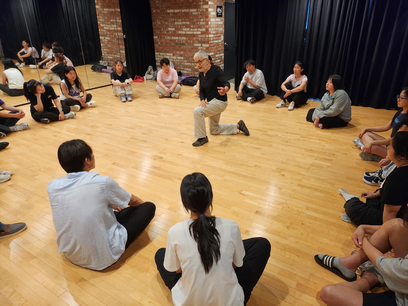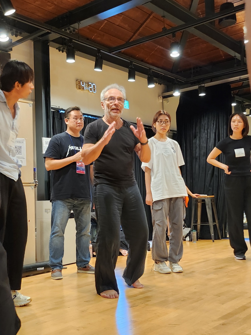 2부에서는 참가자들이 극장 주변의 공간을 탐색하며 다섯 가지 요소를 관찰하고, 이를 자신의 몸으로 표현해 보는 실습이 진행되었다. 또한 1부에서 발전시킨 공연 아이디어와 이 표현을 연계하여 창작을 확장하는 시간을 가졌다.