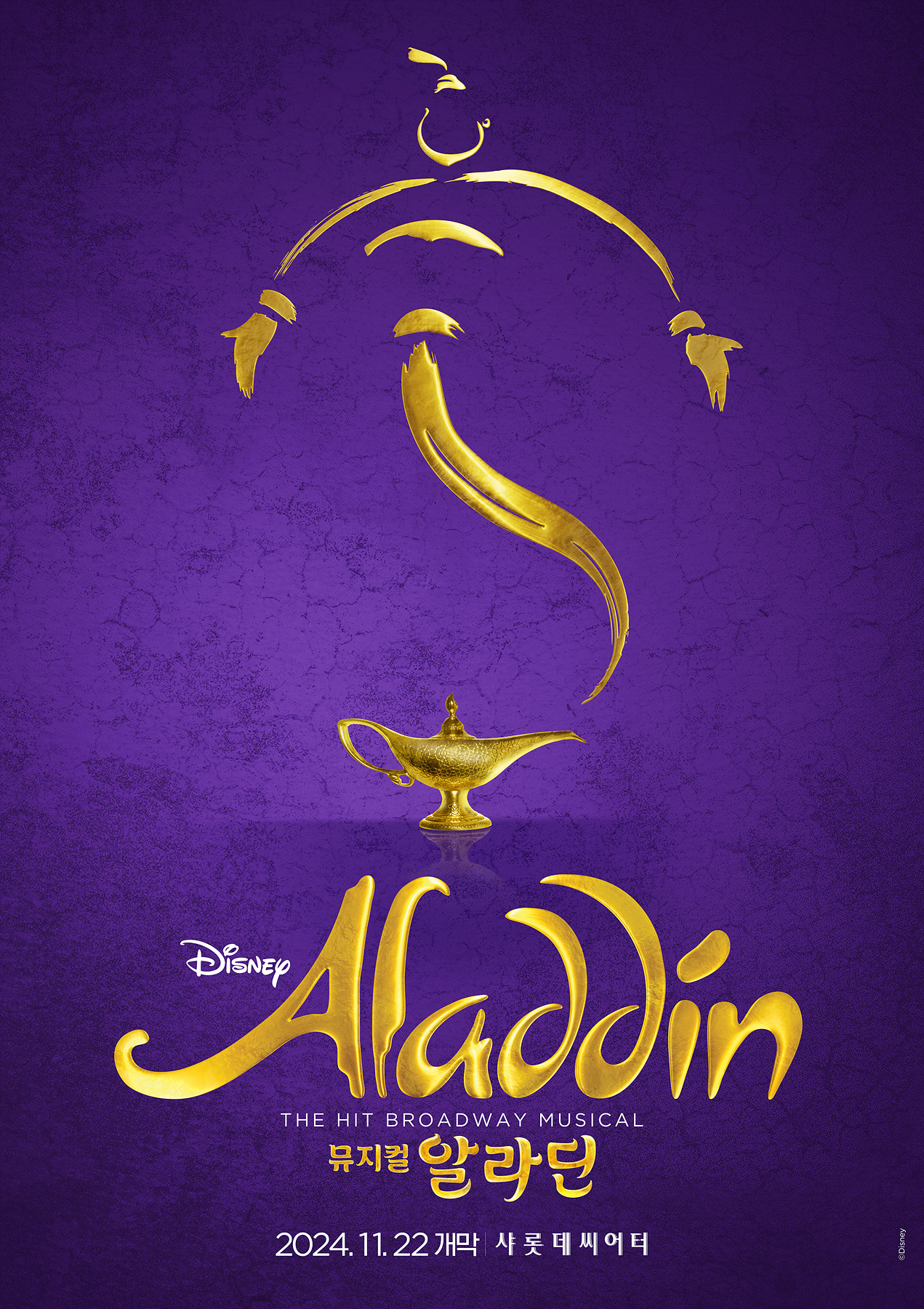 뮤지컬 '알라딘' 한국 초연은 알라딘문화산업전문회사, 롯데컬처웍스, 클립서비스가 공동 주최, 에스앤코가 제작 메르세데스-벤츠 코리아가 협찬으로 참여하며 11월 22일 샤롯데씨어터에서 개막, 9월 첫 티켓 오픈 예 정이다.