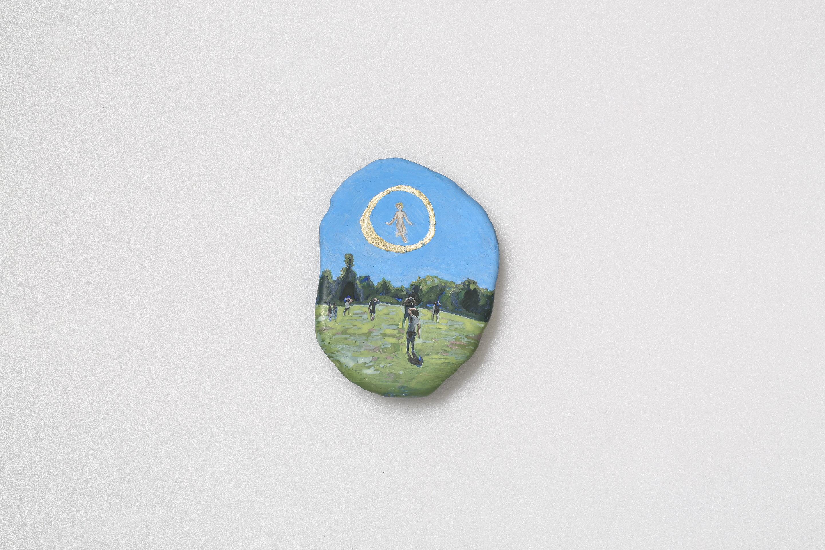 정아롱(b. 1981)은 예술작품이 본래 지니고 있었던 '마술적 힘'을 복원시키고자 하는 소망을 가지고 회화작업을 전개한다. 신화나 전설, 종교적 모티프를 차용하거나 인류 속 오래 전부터 존재해왔던 상징적 기호들을 이용해 내러티브를 구성하면서 신비롭고 원형적인 세계관을 캔버스에 투영해오고 있다. 에그 템페라, 메탈포인트 드로잉, 도예 등과 같은 고대 기법들을 회화작업에 활용하기도 하는데, 일종의 수행의 과정과 마찬가지로 정교하고 까다로운 작업 절차를 거치면서 작가는 회화적 세계와 교차하며 마술성을 소환시킨다. | 계시 | ![]() |