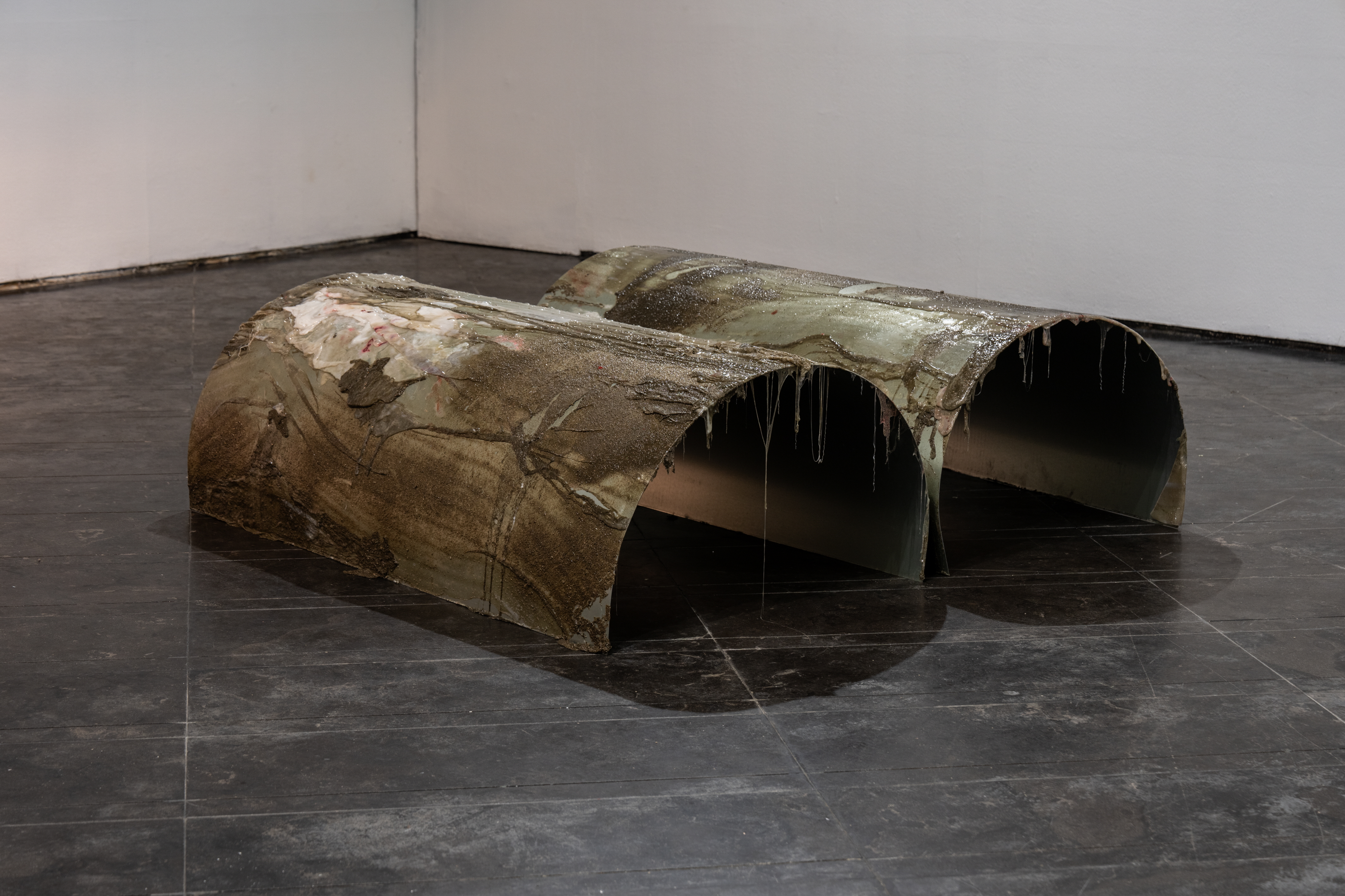 홍혜림(b. 1986)은 건축 노동과 재료에 대한 양가감정을 기반으로, 건축 재료를 주재료로 작업하고, 전시를 만든다. 사회 구조에서 일상을 구성하는 물질이 어떻게 사회적인 시작을 갖는지 생각하고, 잘못된 방식으로 재료를 사용하는 것으로 사회적인 배신을 할 수 있는 방법을 고안한다. 강한 재료, 마구 휘두르고 찌를 수 있는 재료로 만든 척추와, 튼튼하고 덜 민감한 피부, 찔렸거나 눌렸어도 그렇게 존재하는 피부가 있는 몸체를 제작한다. 망상, 환상, 수축, 장꼬임, 저림, 가려움, 경련과 마비, 발작, 맹목, 새로운 형태로 계속, 오랜 시간 동안. 광적, 강박, 불안, 우울함, 그리고 유감스러움을 작업의 태도로 갖고 본능적인 것과 정서적인 것의 경험을 동시에 주는 것을 시도하며, 웃음이 터질 수 있는 어떤 순간을 기대한다. | 발작적! 너무나도 웃기는 되먹임 | ![]() |