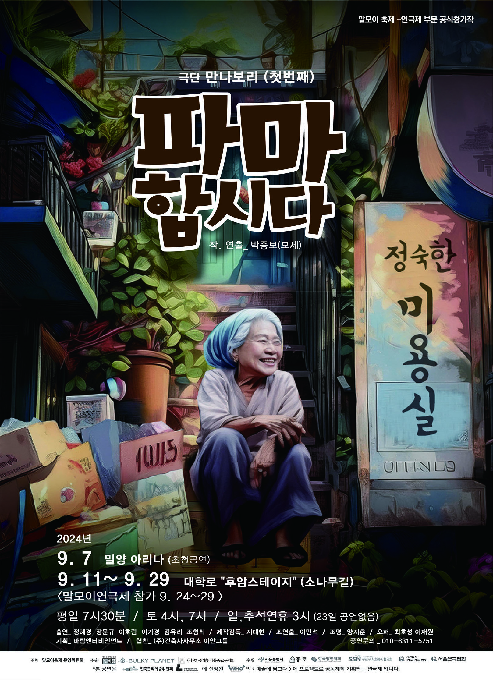 [플레이뉴스 문성식기자] 극단 ‘만나보리가 9월7일 밀양 아리나 (구,밀양연극촌) 7일 초청공연을 시작으로 9월 11일(수)부터 9월29일(일)까지 대학로 후암 스테이지에서 애써 외면하고 잊어버렸던 정이라는 것이 우리의 삶속에서 얼마나 소중한지를 따듯하고 감동적인 이야기를 풀어낸 연극‘파마합시다’를 무대에 올린다.