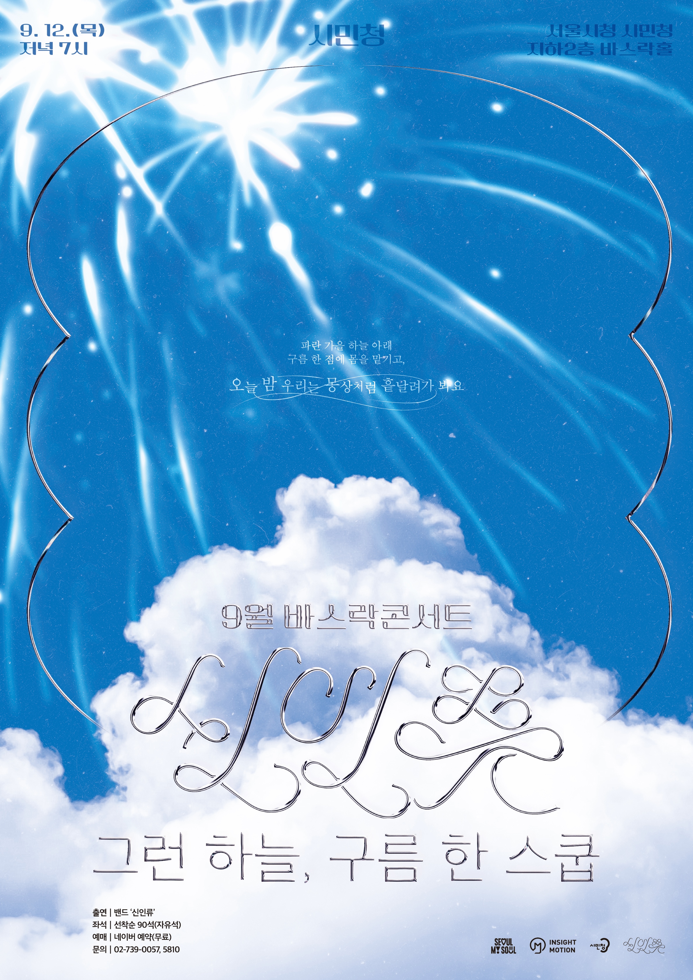 9월 12일(목) 오후 7시 서울시청 시민청 지하 2층 바스락홀에서 바스락콘서트 ‘그런 하늘 구름 한 스쿱 : 신인류’를 진행한다.