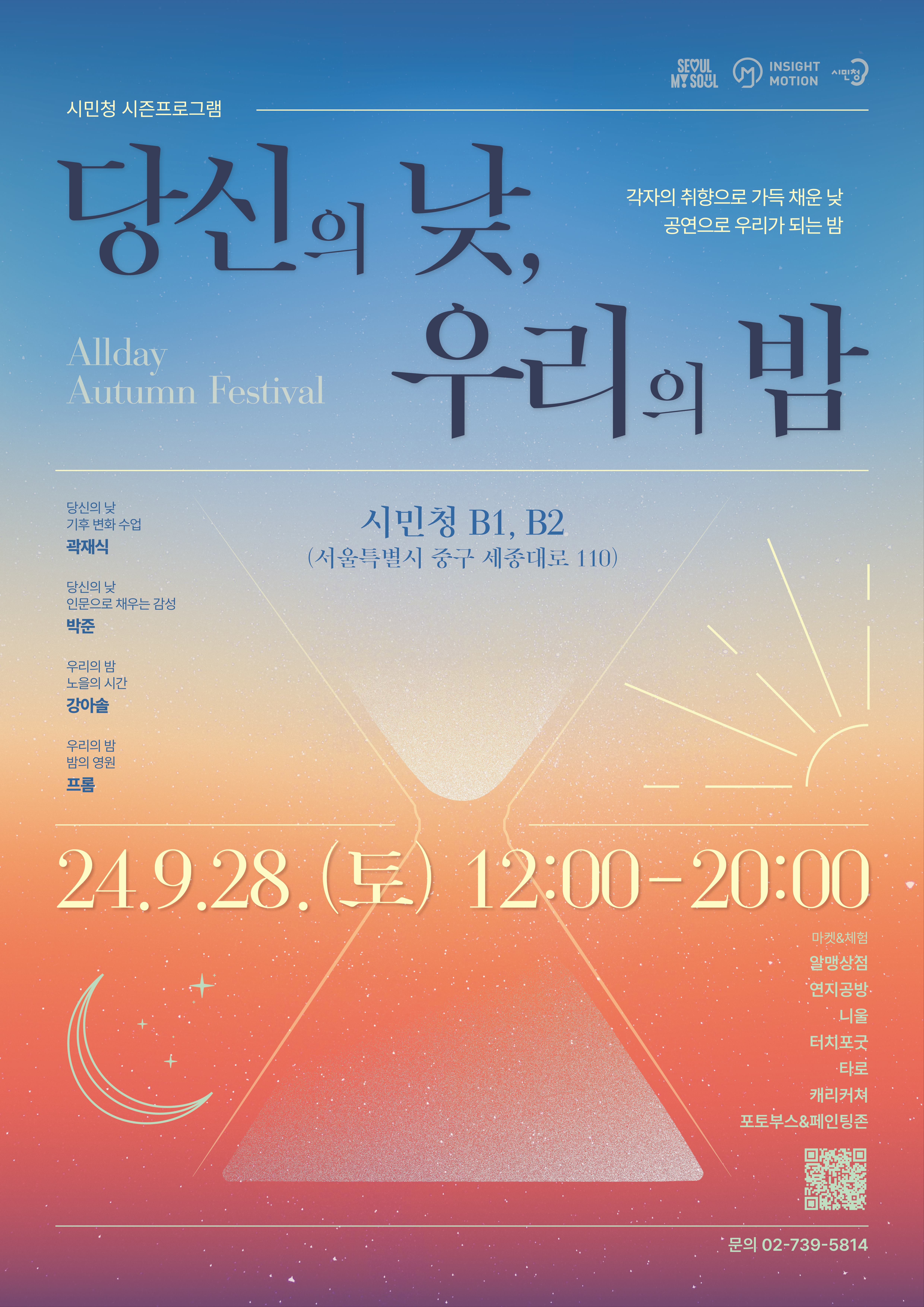 서울시청 시민청이 9월을 맞아 시민 참여형 문화예술축제 ‘당신의 낮, 우리의 밤’을 오는 9월 28일 서울시청 시민청에서 개최한다. ‘당신의 낮, 우리의 밤’에서는 시민들이 무료로 다양한 문화예술 프로그램을 체험할 수 있다.