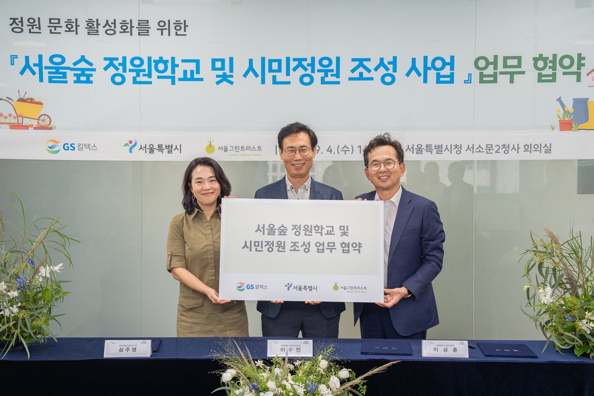 [플레이뉴스 문성식기자] 서울그린트러스트(이사장 지영선)는 지난 4일 서울시청 서소문2청사에서 GS칼텍스, 서울시와 함께 ‘서울숲 정원학교 및 시민정원 조성’ 사업 추진을 위한 삼자간 업무협약(MOU)을 체결했다.
