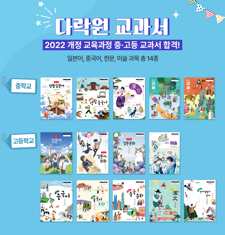 한편 다락원 교과서를 활용하는 선생님들을 위한 수업 지원 사이트 ‘다다익샘’에는 이번 2022개정 교육과정에 합격한 교과서에 대한 지도서, 평가 자료, 미디어 자료를 살펴볼 수 있으며, ‘다다익샘 카카오 채널’에서는 문화 콘텐츠 및 이벤트 소식을 만나볼 수 있다.