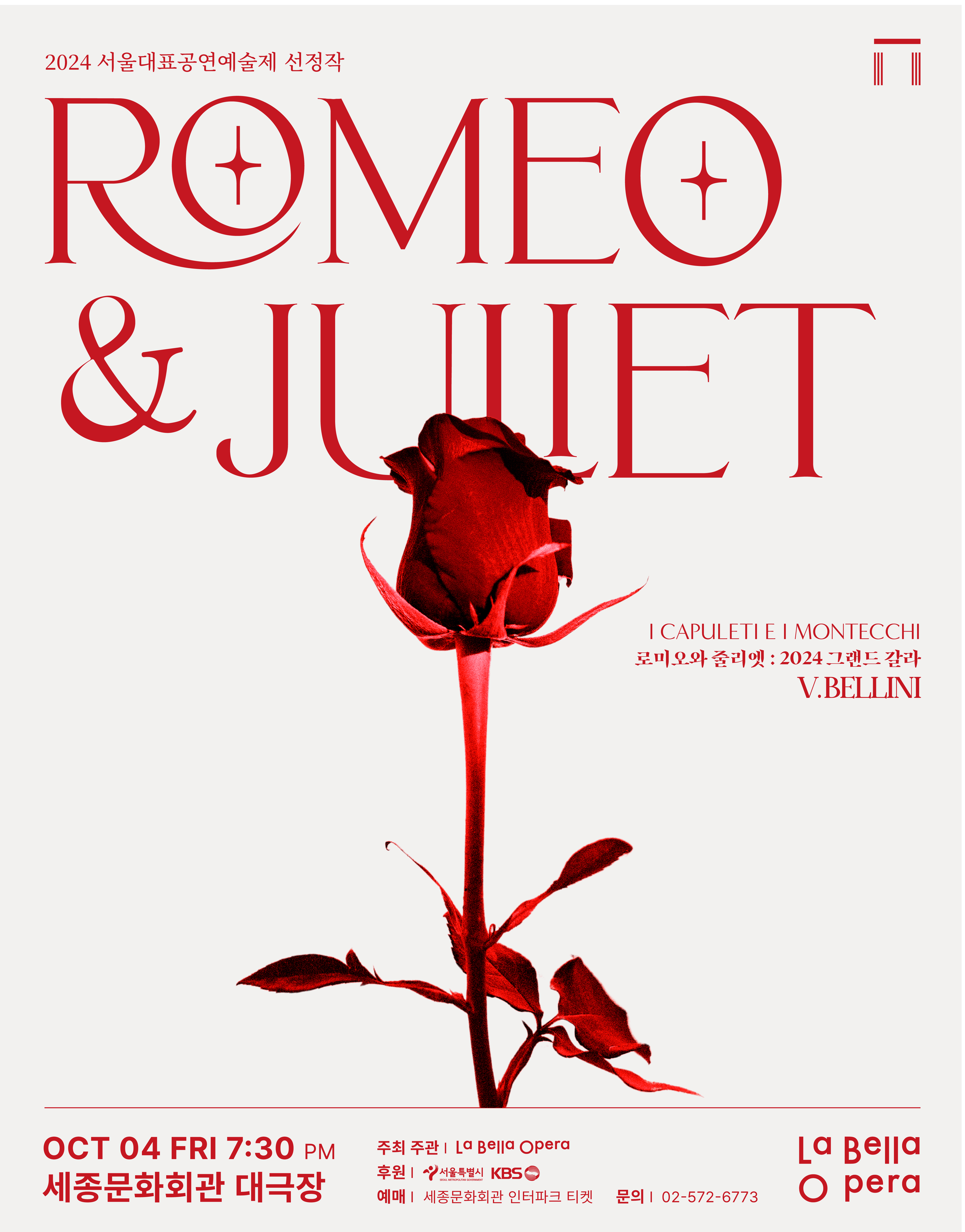 10월 4일(금) 에 진행되는 '오페라 로미오와 줄리엣 : 2024 라벨라 그랜드 갈라' 는 19시 30분 세종문화회관 대극장에서 진행되며, 인터미션 15분 포함 110분 내외로 진행될 예정이다.