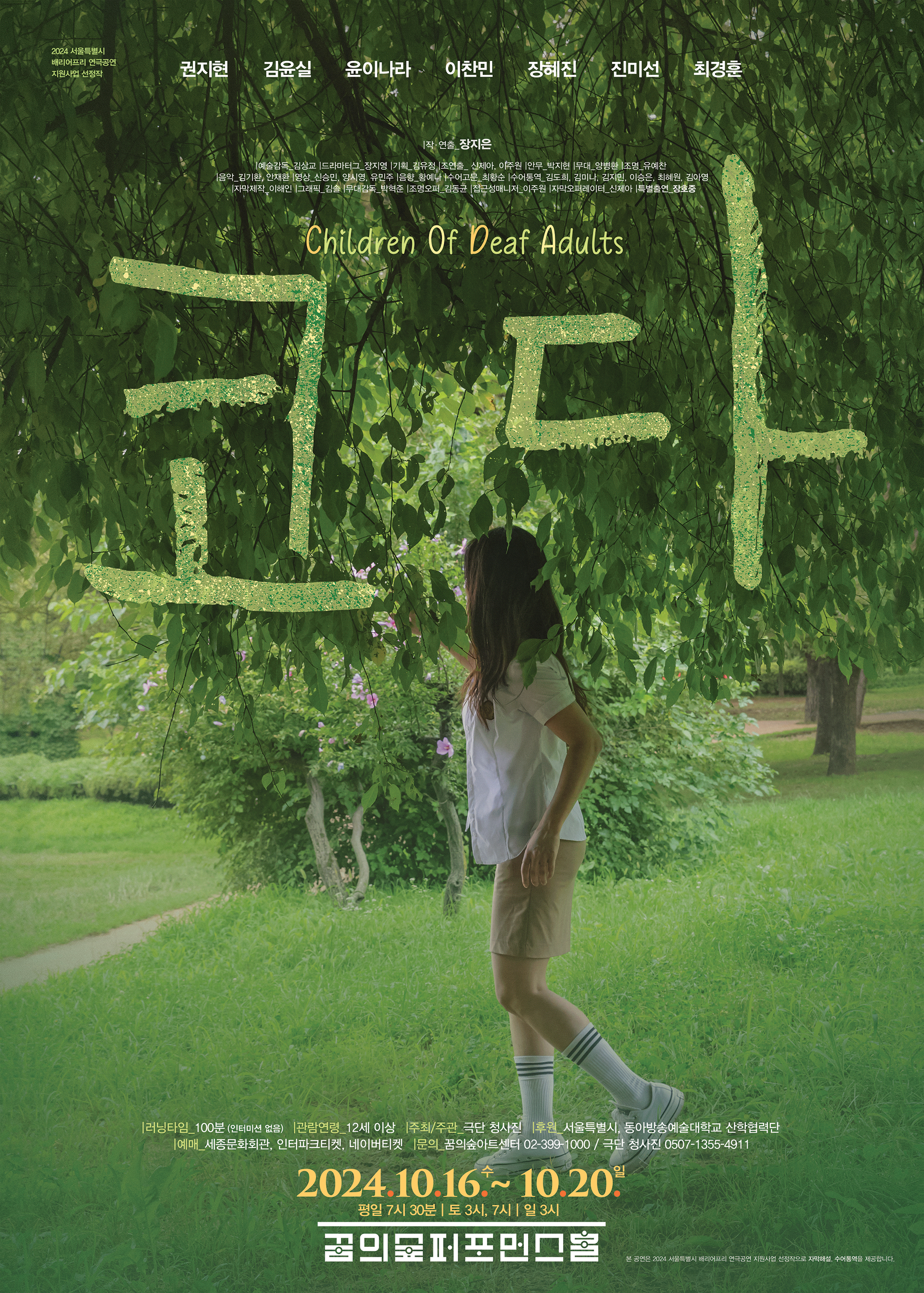 - 10월 18일(금) 7시 30분, 10월 19일(토) 7시, 10월 20일(일) 3시, 총 3회차는 수어통역을 제공합니다.
