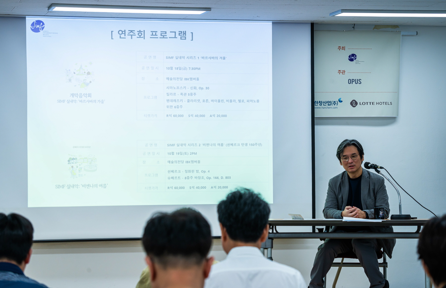 SIMF 실내악 '비엔나의 여름'(10.19, IBK챔버홀)은 쇤베르크 탄생 150주년을 기념해 <현악육중주 '정화된 밤'>과 슈베르트의 몇 안 되는 실내악 중 하나인 <팔중주 바장조, D.803>가 연주된다. 류재준 감독은 "음악회 연주가 좋으면 또 듣고 싶잖아요. 이번 연주도 잘 되서 그 곡 또 듣고 싶다 이렇게 되면 좋겠습니다"라고 말했다.