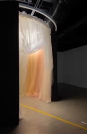 자기 자신을 떠나버린 소리를 좇는 대신, 몸이 가진 다른 힘을 불러냅니다. 섬세하고 가벼운 반투명의 장막은 겹겹이 무지갯빛 소리를 우리의 피부에 전해 줍니다. 설치 작품 1점 Ethereal Breath, 2024, 튤, 실크, 가변크기(지름 3미터) |