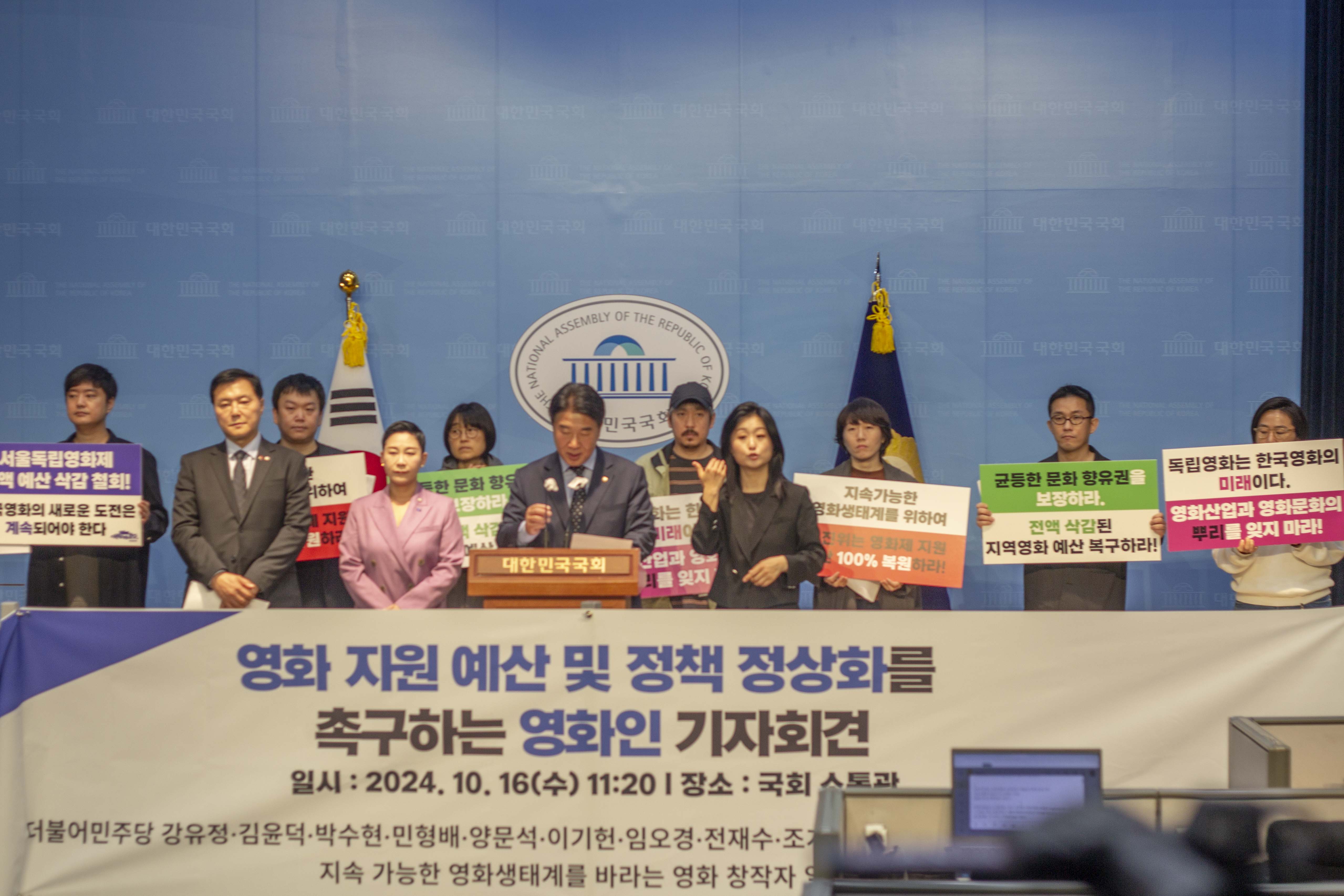 기자회견을 통해 영화감독 18명은 최근 잇따른 독립영화·예술영화 지원 정책의 변화와 영화제, 지역영화 삭감에 대해 입장을 밝히고 정상화를 촉구하였다. 기자회견 현장에는 더불어민주당 조계원 의원, 이기헌 의원과 조국혁신당 김재원 의원이 국회소통관에 참석하여 영화인의 목소리를 경청하고 지지하였다.