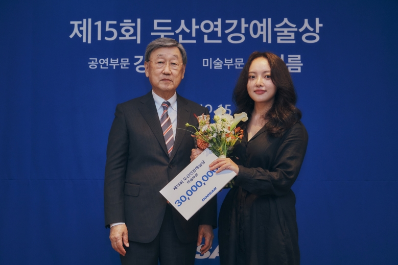 [플레이뉴스 문성식기자] 두산연강재단(이사장 박용현)은 10월 15일, 서울 소공동에 위치한 롯데호텔 벨뷰 스위트룸에서 ‘제15회 두산연강예술상' 시상식을 열고, 수상자로 연출가 강보름(공연부문) 미술작가 정여름(미술부문)에게 상을 수여했다.