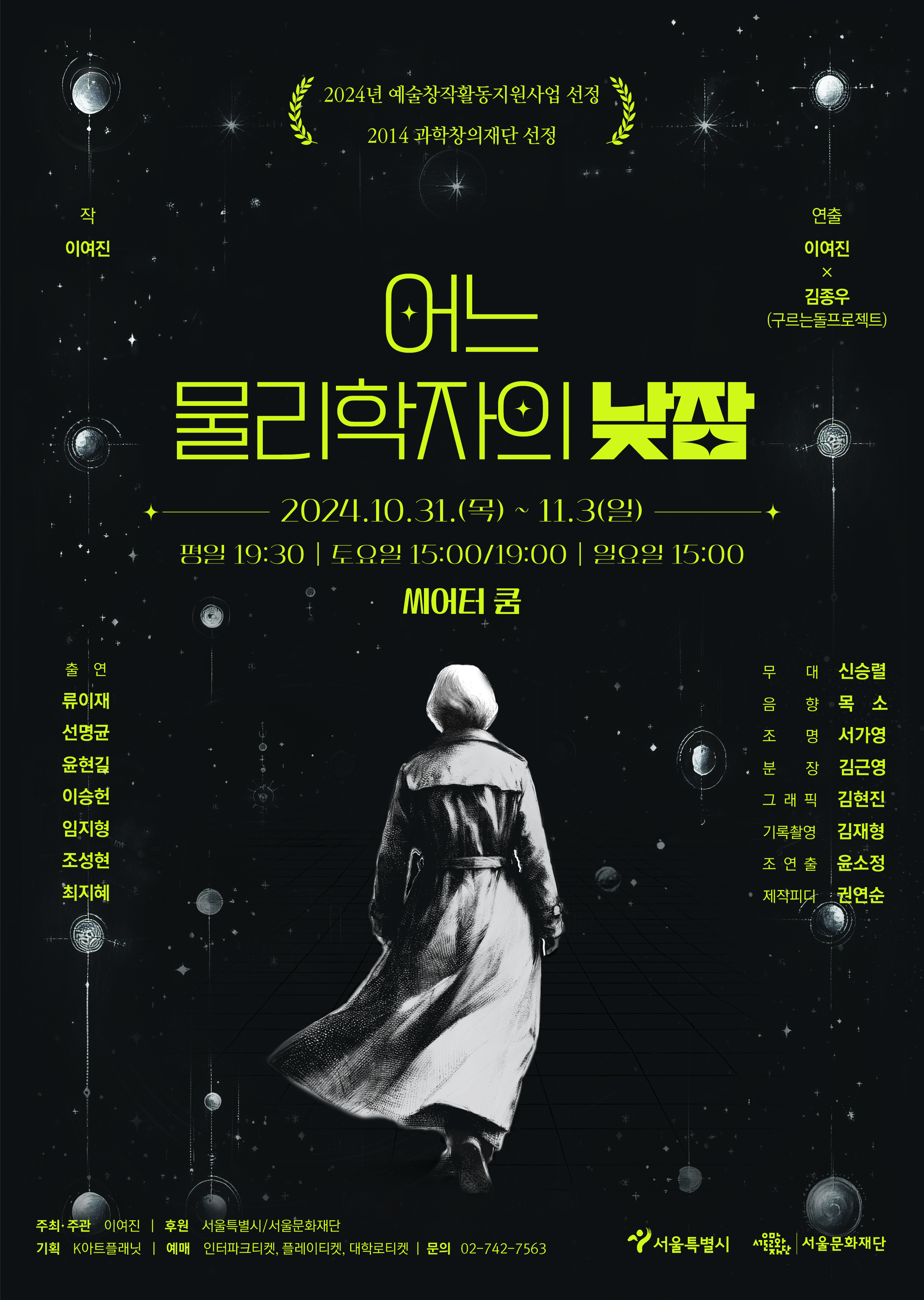 '어느 물리학자의 낮잠' 작 이여진, 연출 이여진x김종우(구르는돌 프로젝트) 2024. 10. 31(목) ~ 11. 3(일) 씨어터 쿰 평일 7시 30분 / 토 3시, 7시 / 일 3시