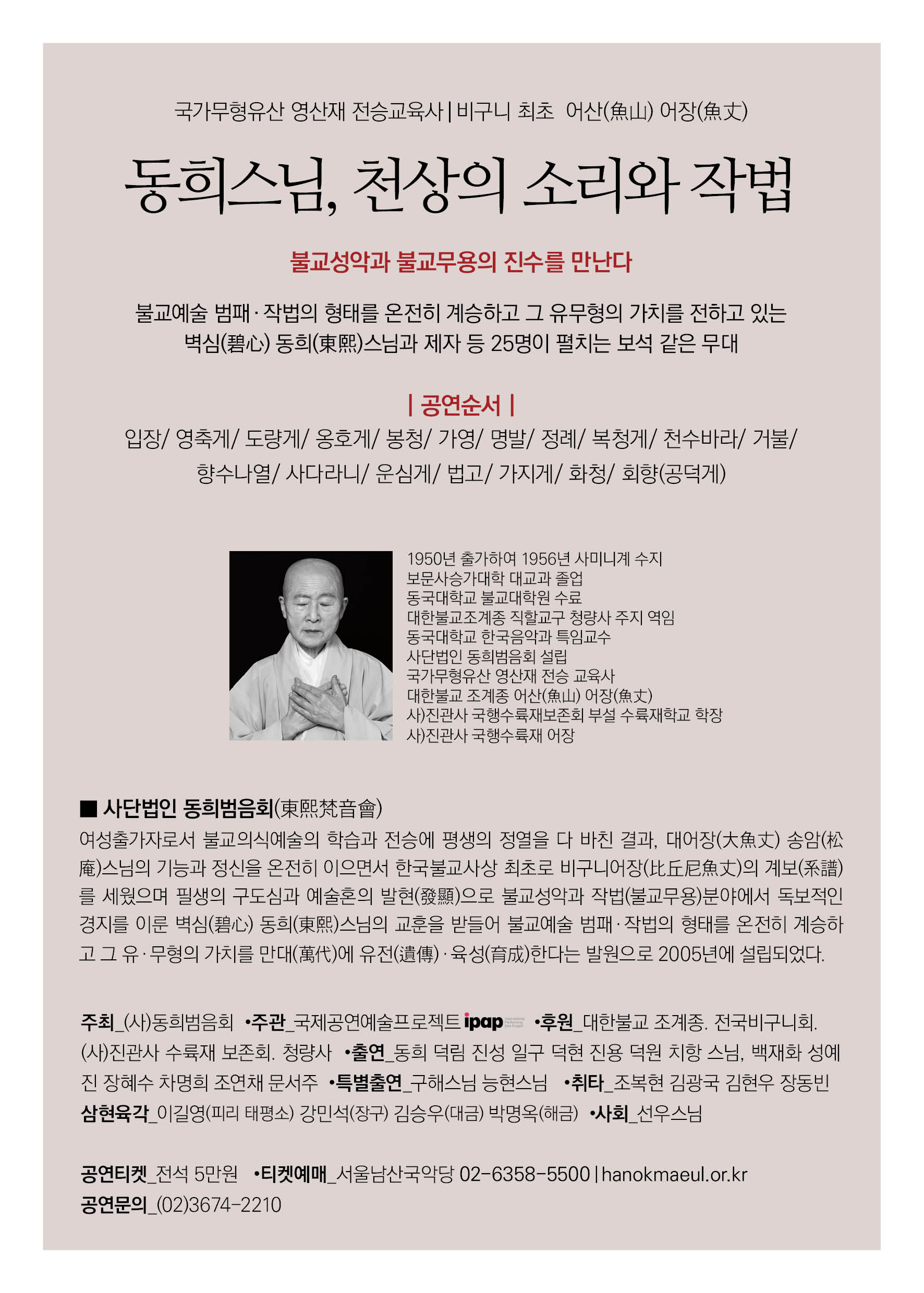 주 최_ (사)동희범음회 주 관_ 국제공연예술프로젝트(IPAP)