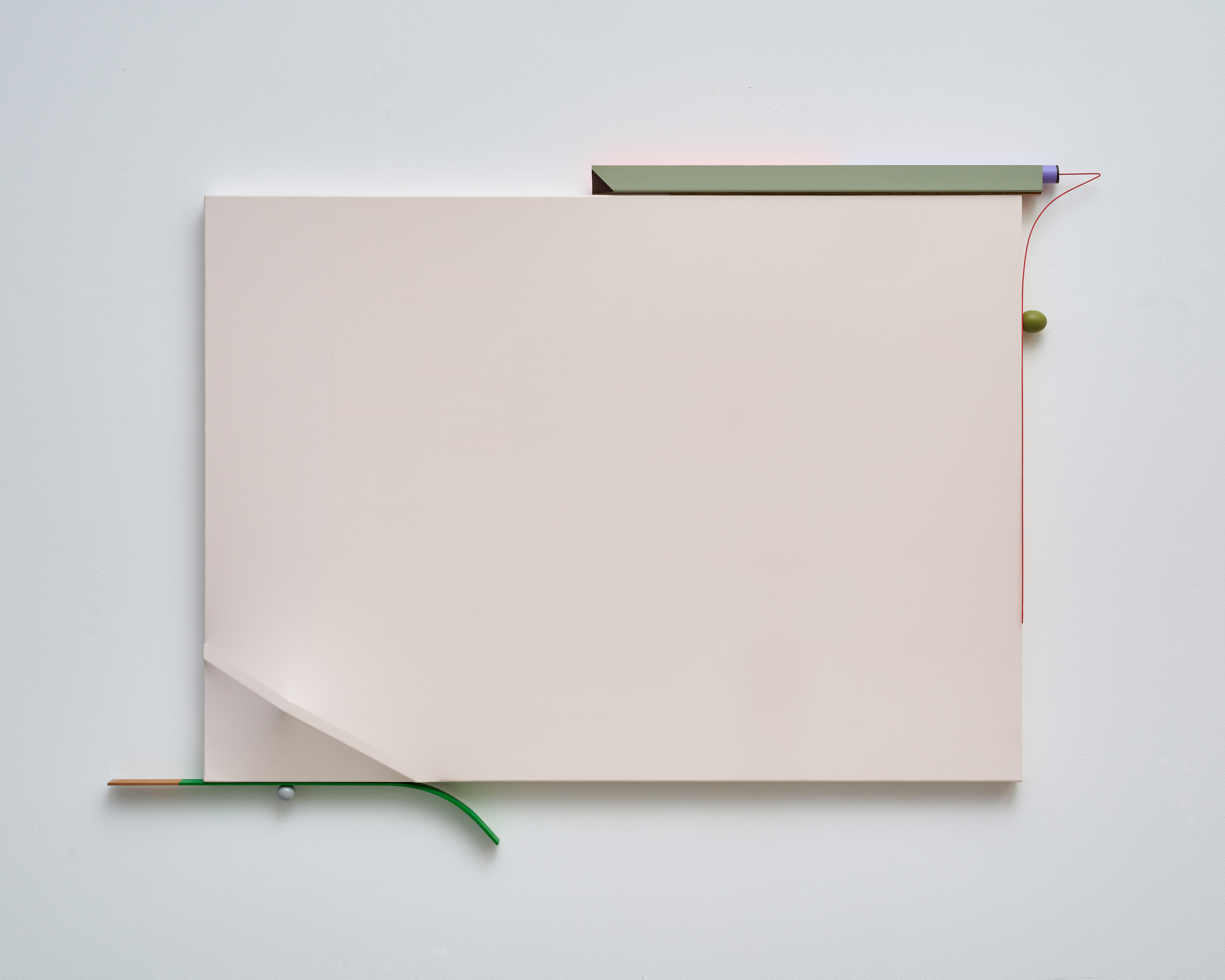 백색 막은 캔버스 천의 역할을 대신하며, 내부의 오브제는 캔버스 천과 프레임 사이에 자리 잡아 새로운 형식의 회화를 제시한다.