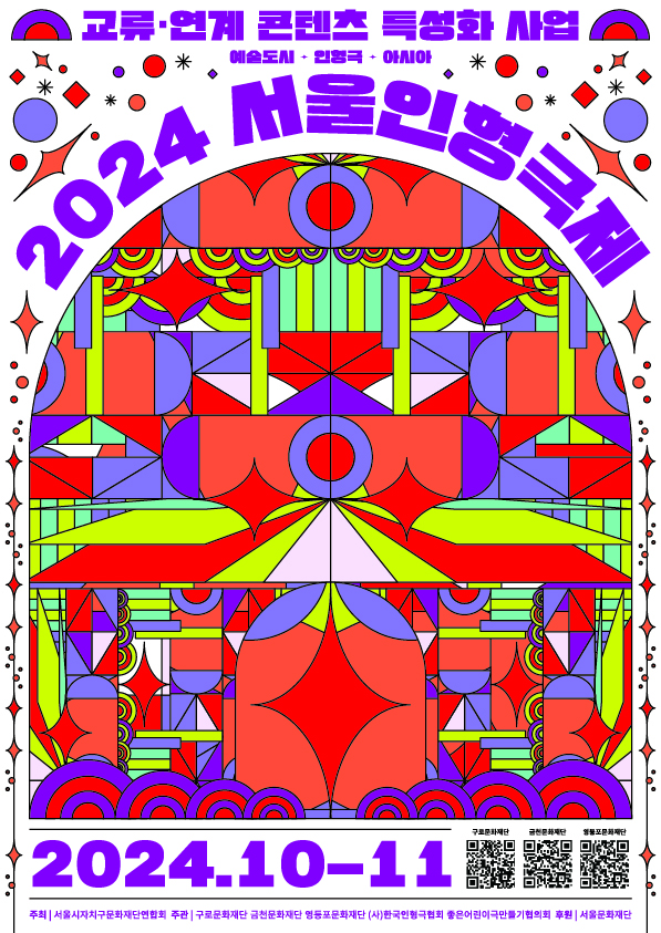 ‘2024 서울인형극제’는 서울시자치구문화재단연합회가 주최하고 서울문화재단이 후원하는 ‘권역별 교류·연계 콘텐츠 특성화 사업’의 일환으로 진행되며, 영등포문화재단, 구로문화재단, 금천문화재단 등 서울 서남권 3개 문화재단과 한국인형극협회가 함께한다.