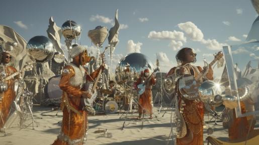 ‘솔라소닉 밴드(염인화)’에서 확장현실(XR) 속 관람객은 기후위기가 실제로 일어난 미래에서 밴드 리더가 되어 치열한 자연 환경에 맞서 야외 공연을 이끌어야 한다.