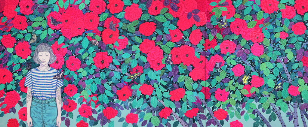 [플레이뉴스 문성식기자] 화면 가득 채워진 꽃들의 배경 속에 소녀, 나비, 새 등의 조화로운 이미지 조합으로 작품 세계를 펼치는 서양화가 황인란 작가는 2024년 10월 24일(목) ~ 11월 28일(목)까지 서울 강남구 소재의 ARTCUBE 2R2에서 '정오의 심연 : 침묵의 베아트리체' 타이틀로 초대 개인전을 진행 중에 있다.