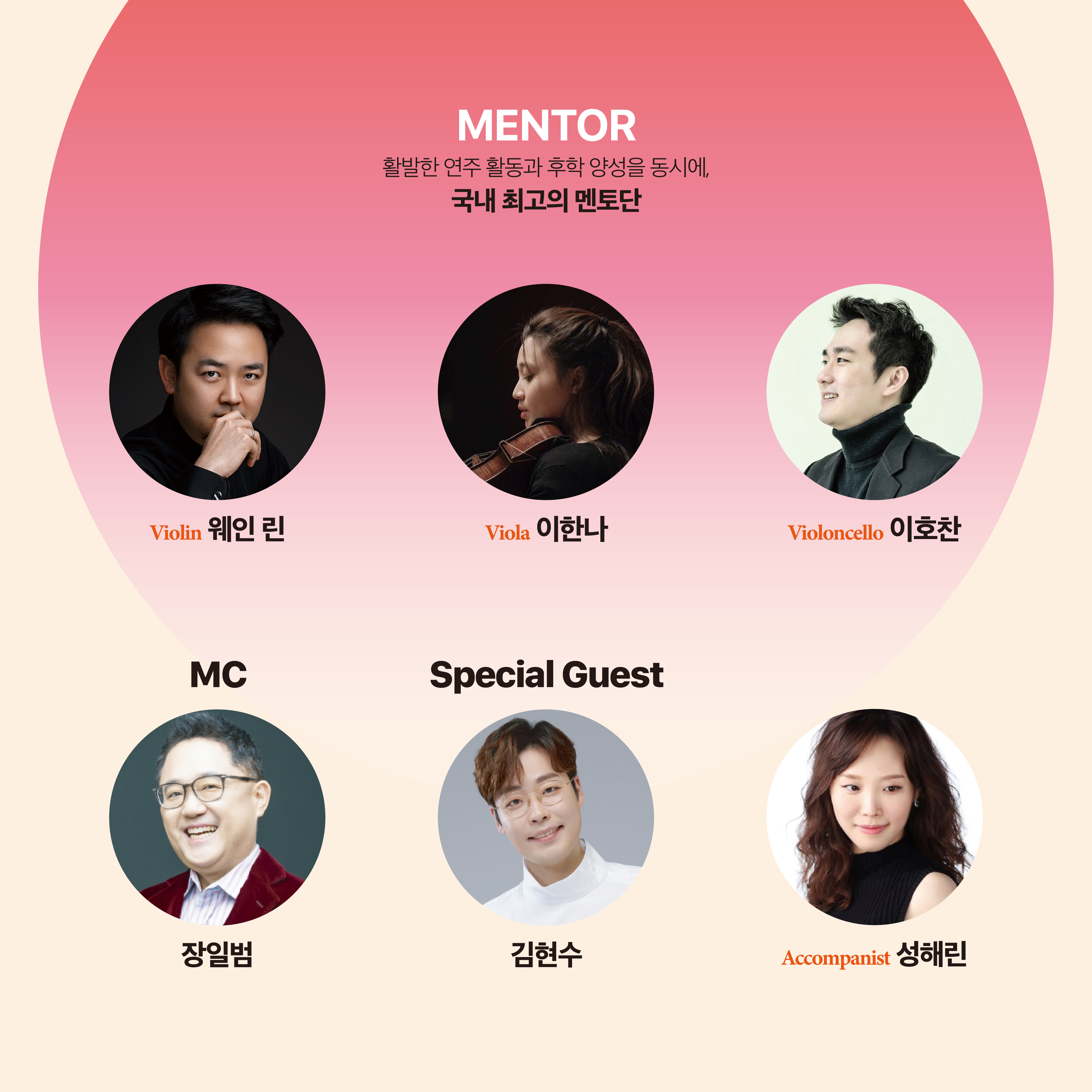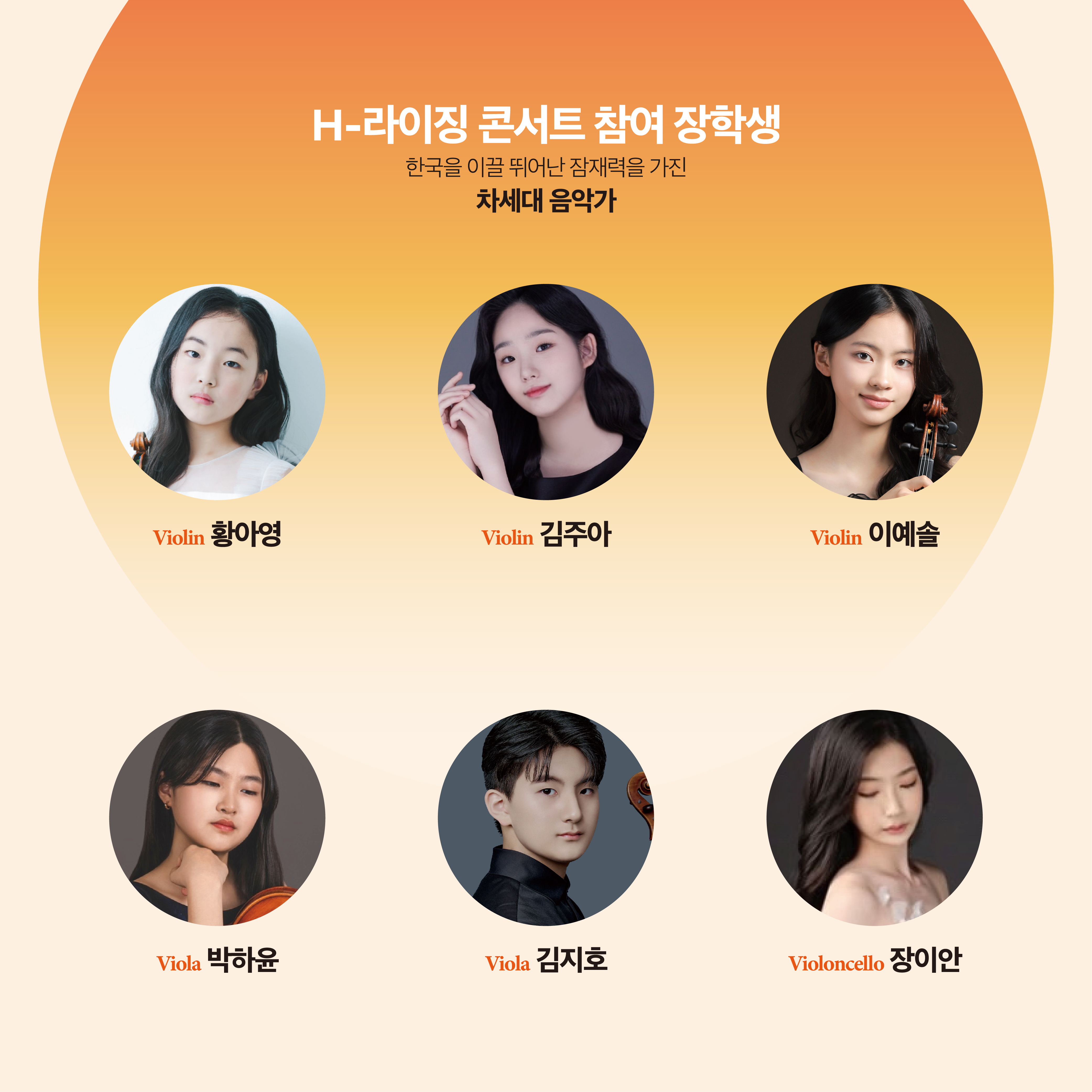 올해는 이 사업의 장학생 중 6명이 연주자로 참여하며, 웨인 린(바이올린), 이한나(비올라), 이호찬(첼로) 등 국내 최정상급 음악가들로부터 멘토링을 받아 음악적 기량뿐만 아니라 무대에서의 자신감, 음악 해석력, 소통 능력까지 크게 성장했다. 이번 콘서트는 그들이 일궈낸 놀라운 실력을 직접 감상할 수 있는 특별한 기회가 될 것이다.
