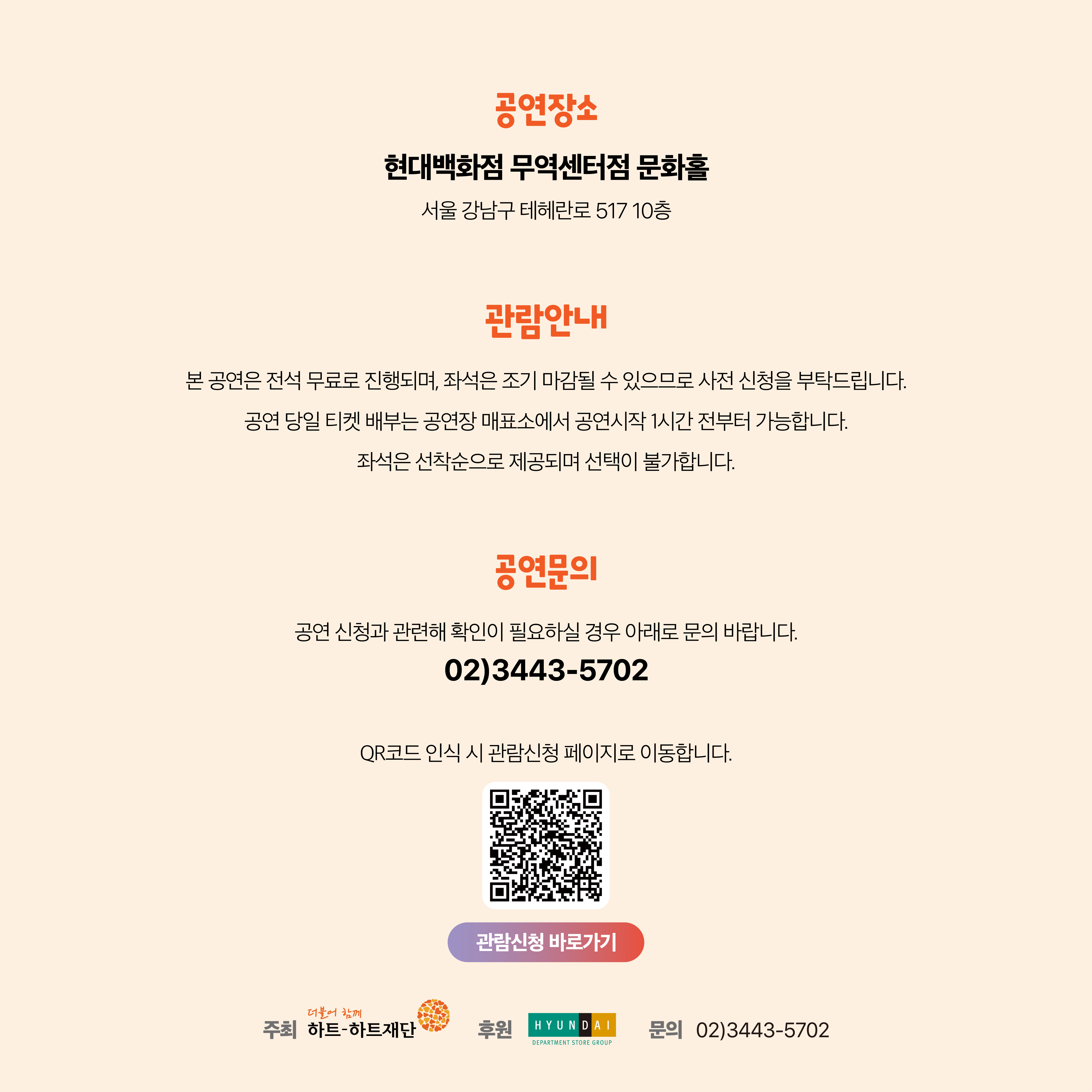 · 장소: 현대백화점 무역센터점 문화홀 (서울 강남구 테헤란로 517 10층)
