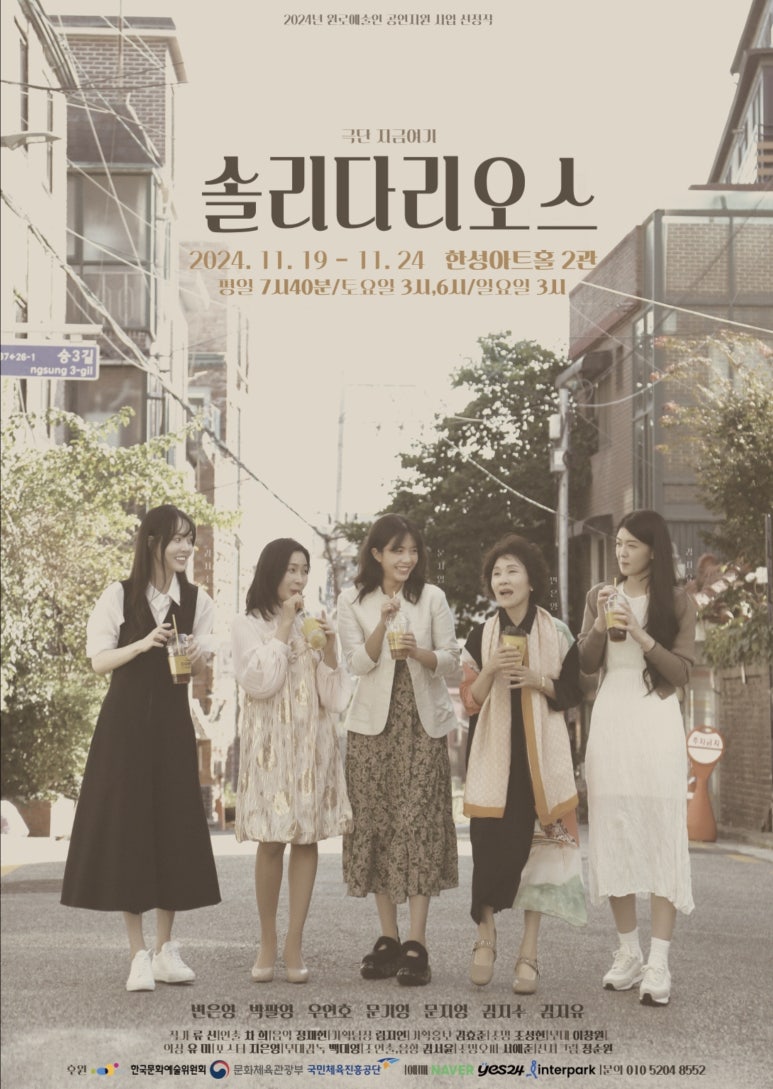 [플레이뉴스 문성식기자] 극단 '지금여기'에서 2024년 원로예술인공연지원사업에 선정되어 오는 11월 19일부터 24일까지 한성아트홀 2관에서 '솔리다리오스'를 공연한다.