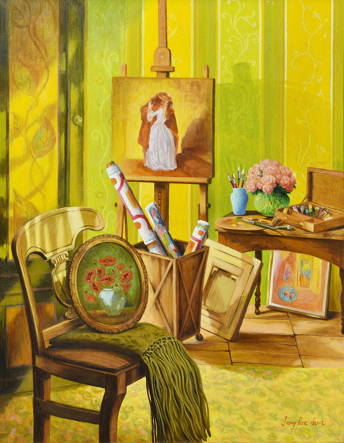 그녀의 작업은 실내라는 공간을 우리 눈에 보이는 그대로 재현하는 것에 그치지 않고, 그 조형 공간의 아름다움을 드러낼 수 있는 구성 및 구도를 탐색한다.