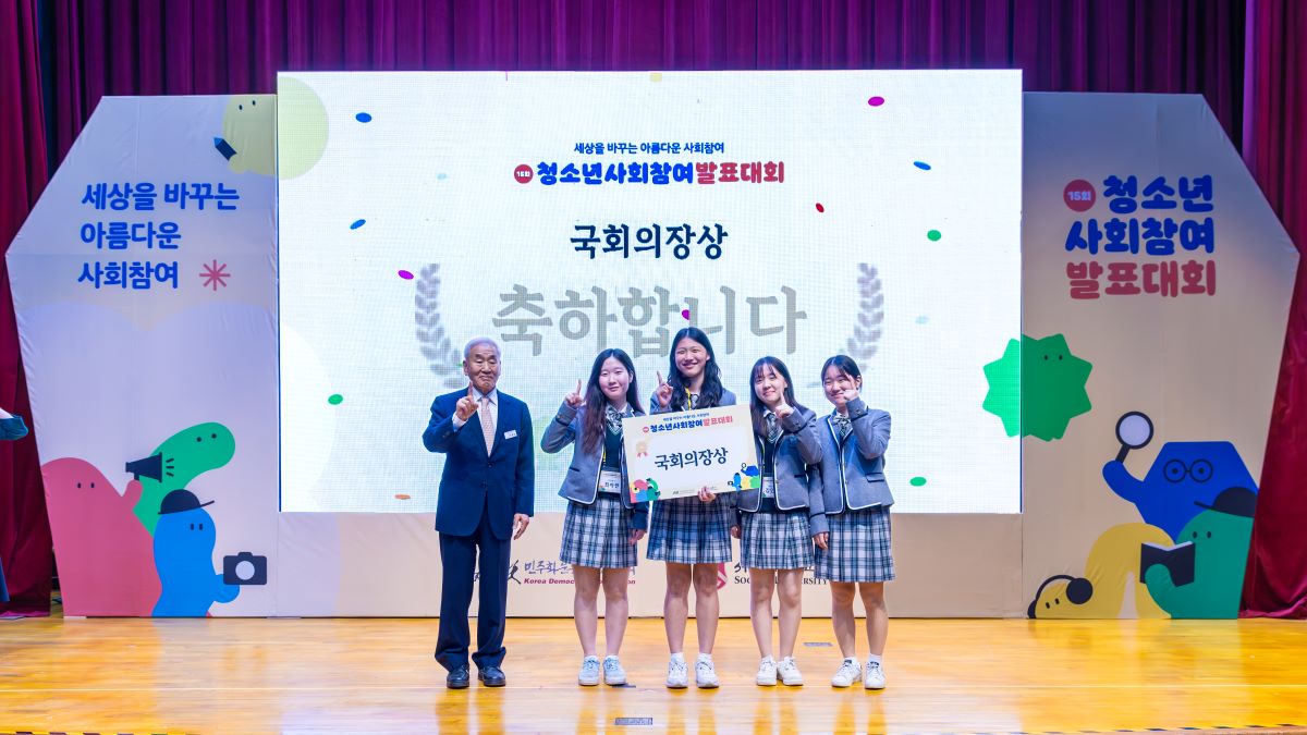 하나고등학교 학생 4명으로 구성된 ‘개심문고’ 모둠이 ‘제15회 청소년사회참여발표대회’에서 국회의장상을 수상했다