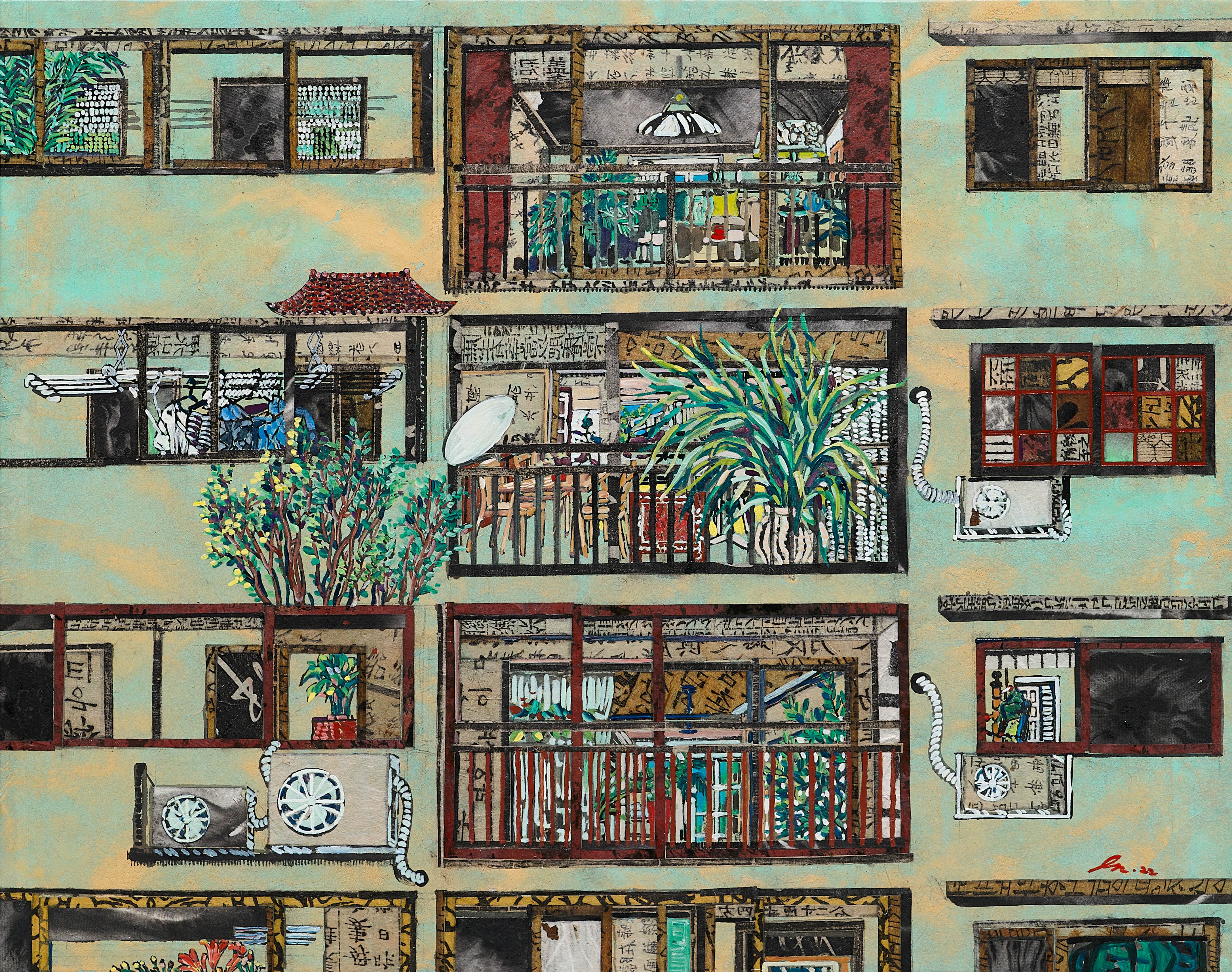 권인경은 끊임없이 변화하는 외부 환경과 ‘집’이라는 내부의 개인 공간을 동시에 조명해 이질적인 차원이 뒤섞인 비현실적인 풍경을 그려 보인다.