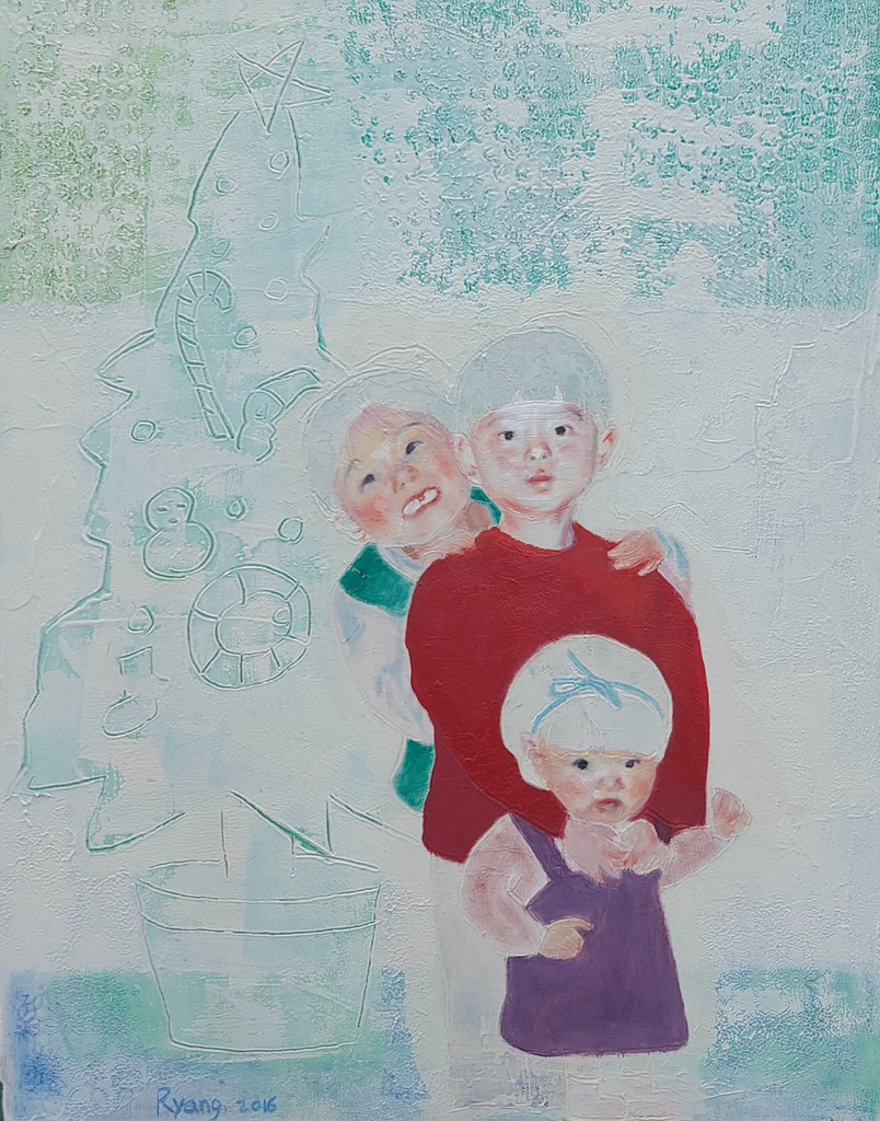 상념에 젖은 아이의 모습에 마음속을 엿보고 싶은 엄마의 심정을 대변이라도 하듯 작품에는 표정 하나 하나 섬세하게 표현되어 따뜻함이 베어 나온다.