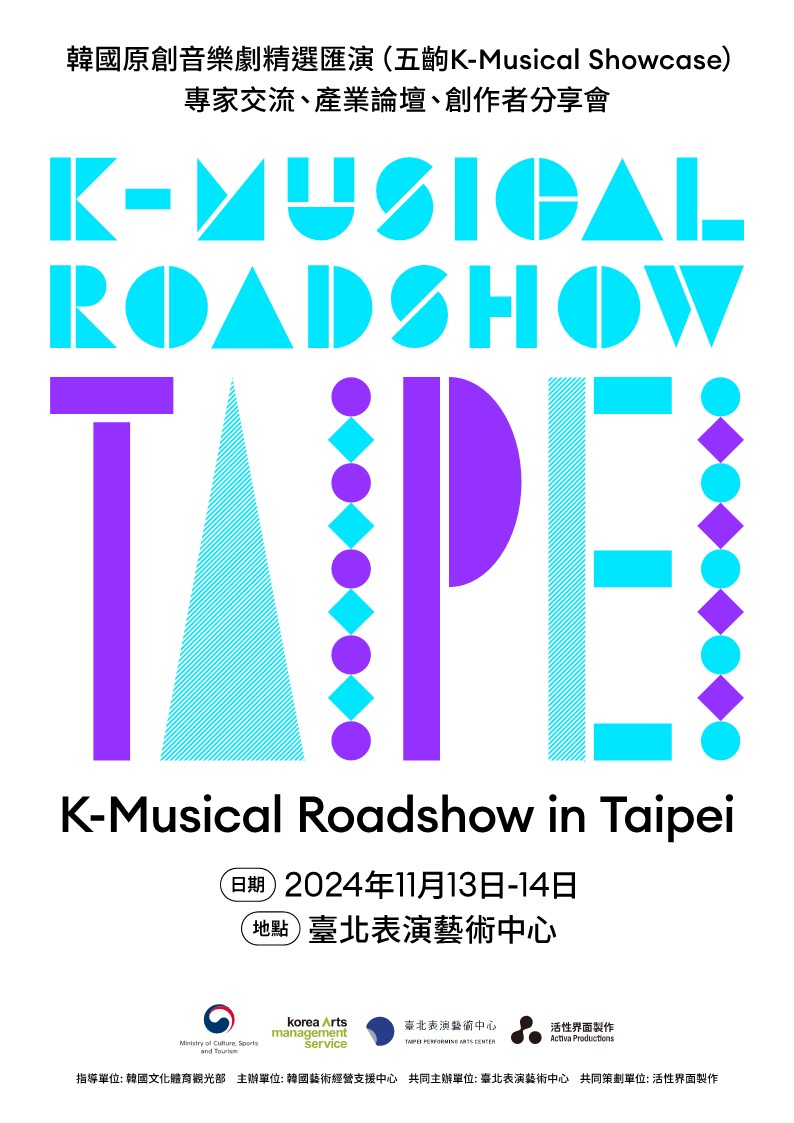 [플레이뉴스 문성식기자] 문화체육관광부가 주최하고 (재)예술경영지원센터가 주관하는 ‘K-뮤지컬로드쇼 in 타이베이’가 오는 11월 13일(수) 오후 2시와 11월 14일(목) 오후 7시 대만 타이베이 공연예술센터 블루박스에서 개최된다.