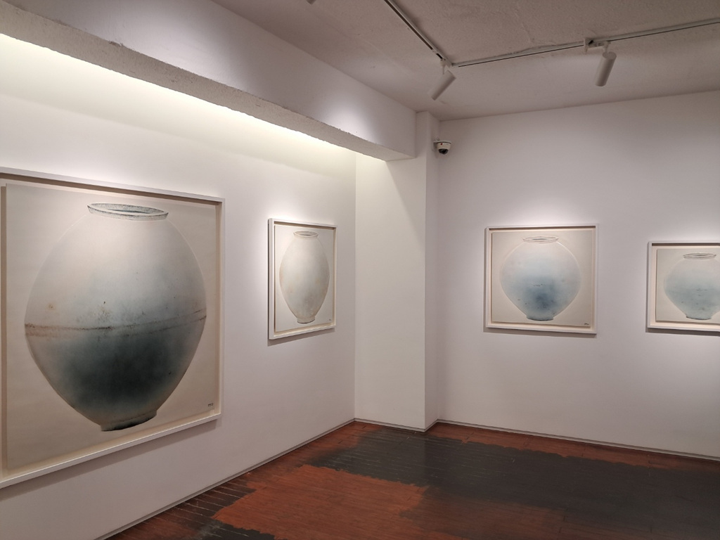 한편 이번 전시에 출품된 100호 달항아리는 5일 동안의 가마 불을 10일로 늘려 작가의 모든 기법과 상상력이 동원된 작업으로 이전의 작품과는 확연히 다르게 도자회화의 진수를 보여주고 있고 앞으로의 대작에 대한 열망을 예고하고 그에 대한 준비와 계획을 작가는 밝히고 있다.