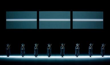 1막의 마지막을 장식하는 ‘무의’는 8명의 무용수가 검을 들고 추는 춤으로 오와 열, 검의 각을 맞춰 간결하면서도 강한 힘이 느껴진다.