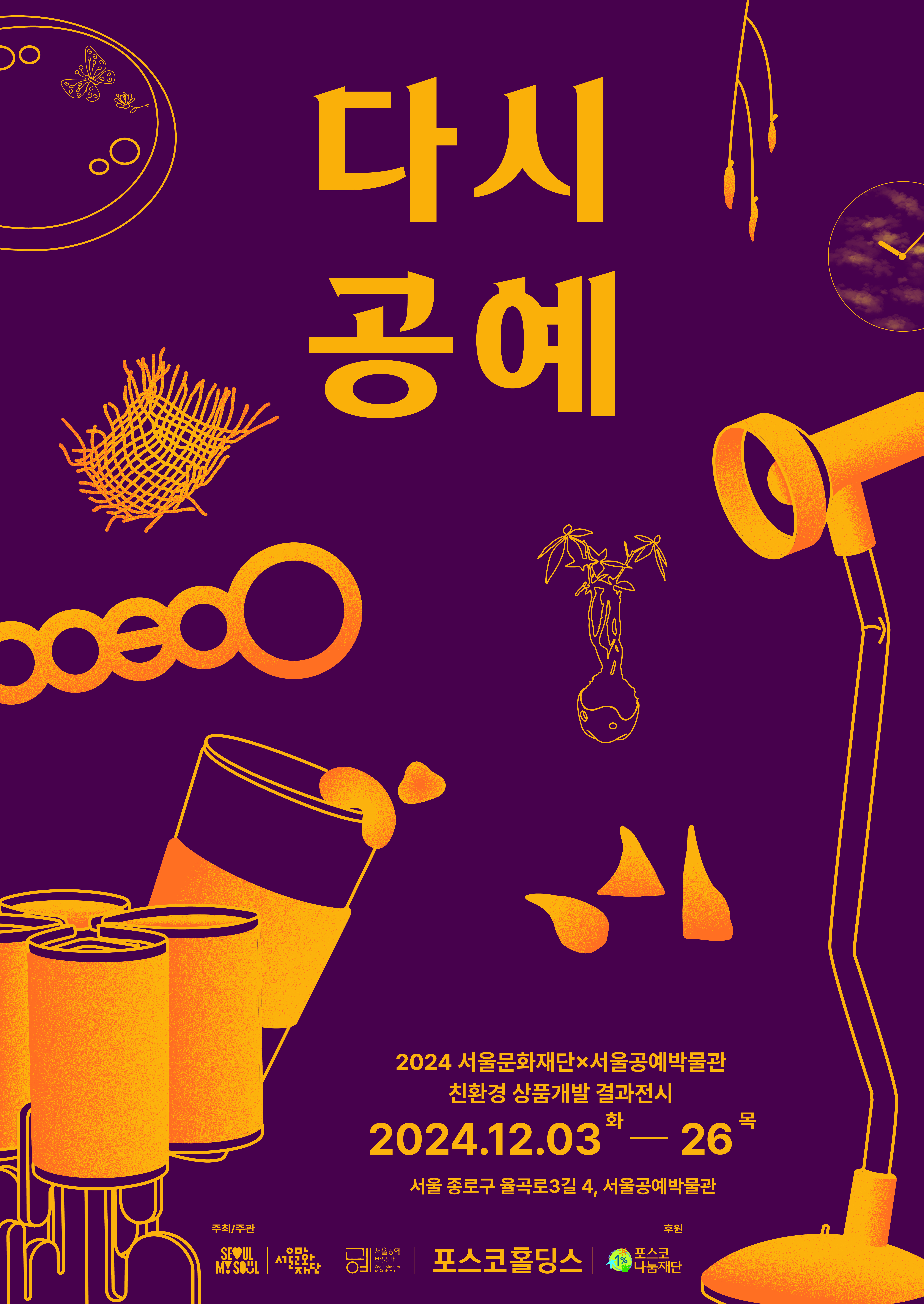 [플레이뉴스 문성식기자] 서울문화재단(대표이사 이창기)은 포스코홀딩스(대표이사 장인화)와 함께 '다시, 공예'展을 내달 3일(화)부터 26일(목)까지 서울공예박물관(종로구 안국동)에서 개최한다.